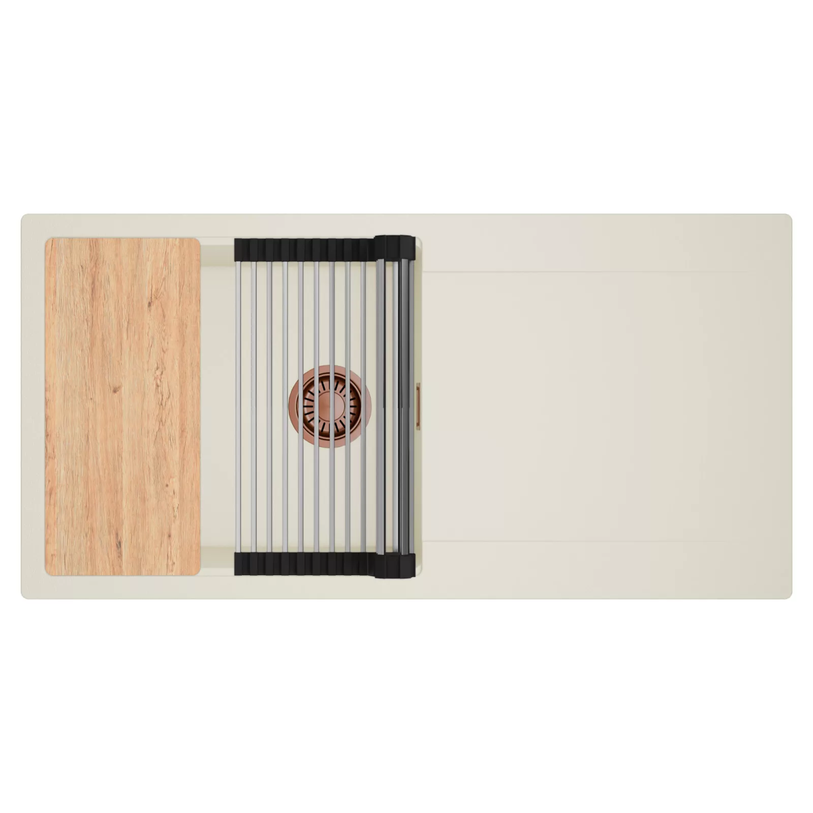 HD Onyx White 100 egymedencés mosogatótálca szett, vágódeszkával és csepegtetőráccsal, tört fehér
