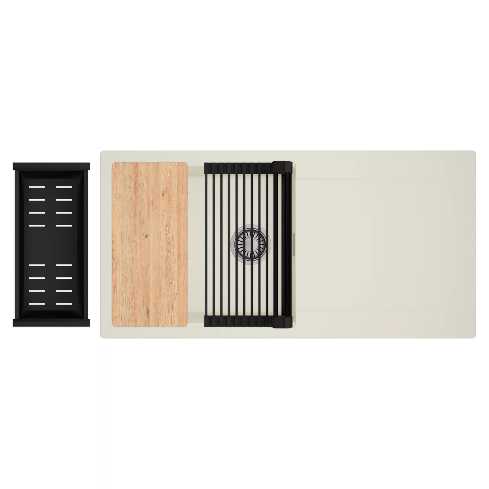 HD Onyx White 100 egymedencés mosogatótálca szett, vágódeszkával, csepegtetőráccsal és kosárral, tört fehér