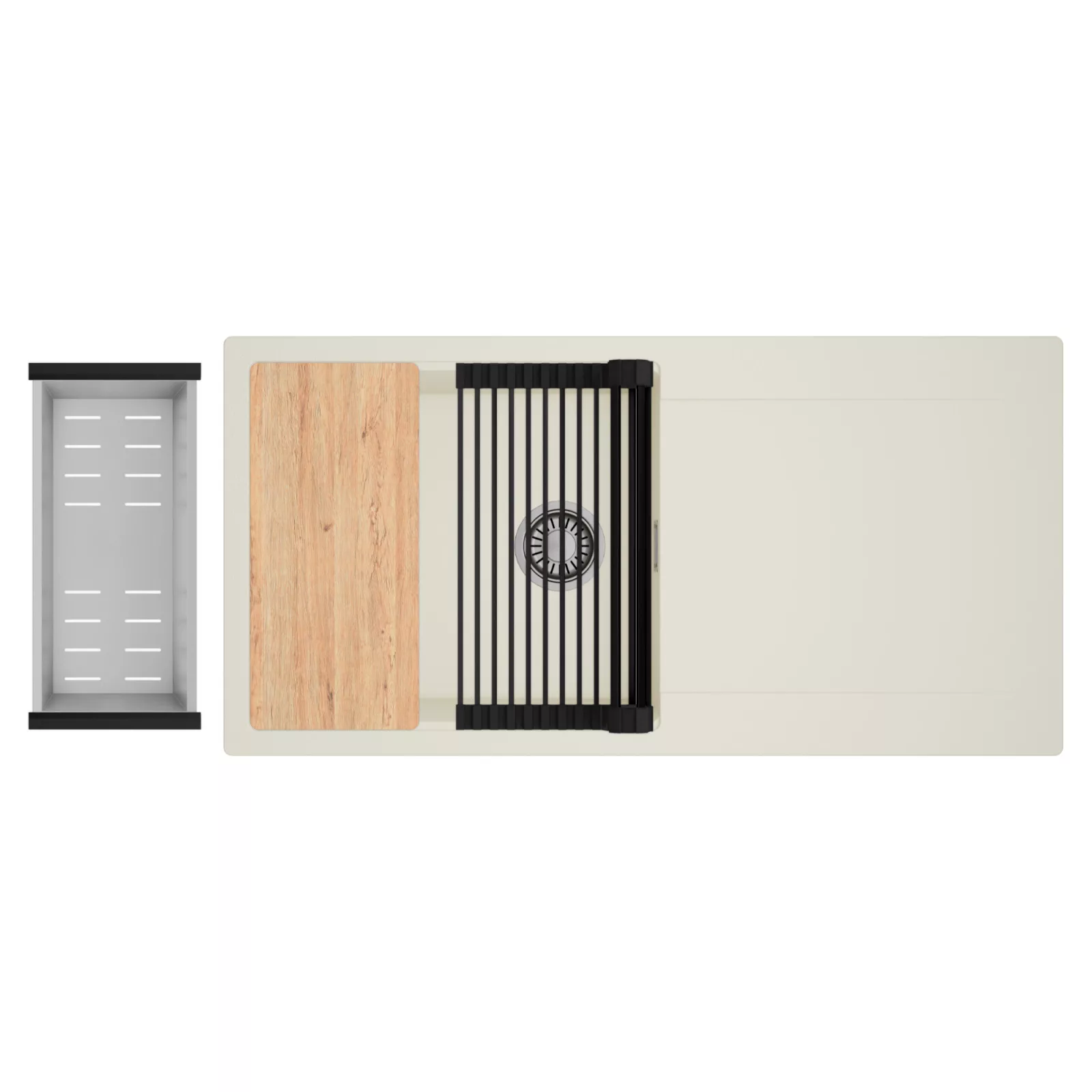 HD Onyx White 100 egymedencés mosogatótálca szett, vágódeszkával, csepegtetőráccsal és kosárral, tört fehér