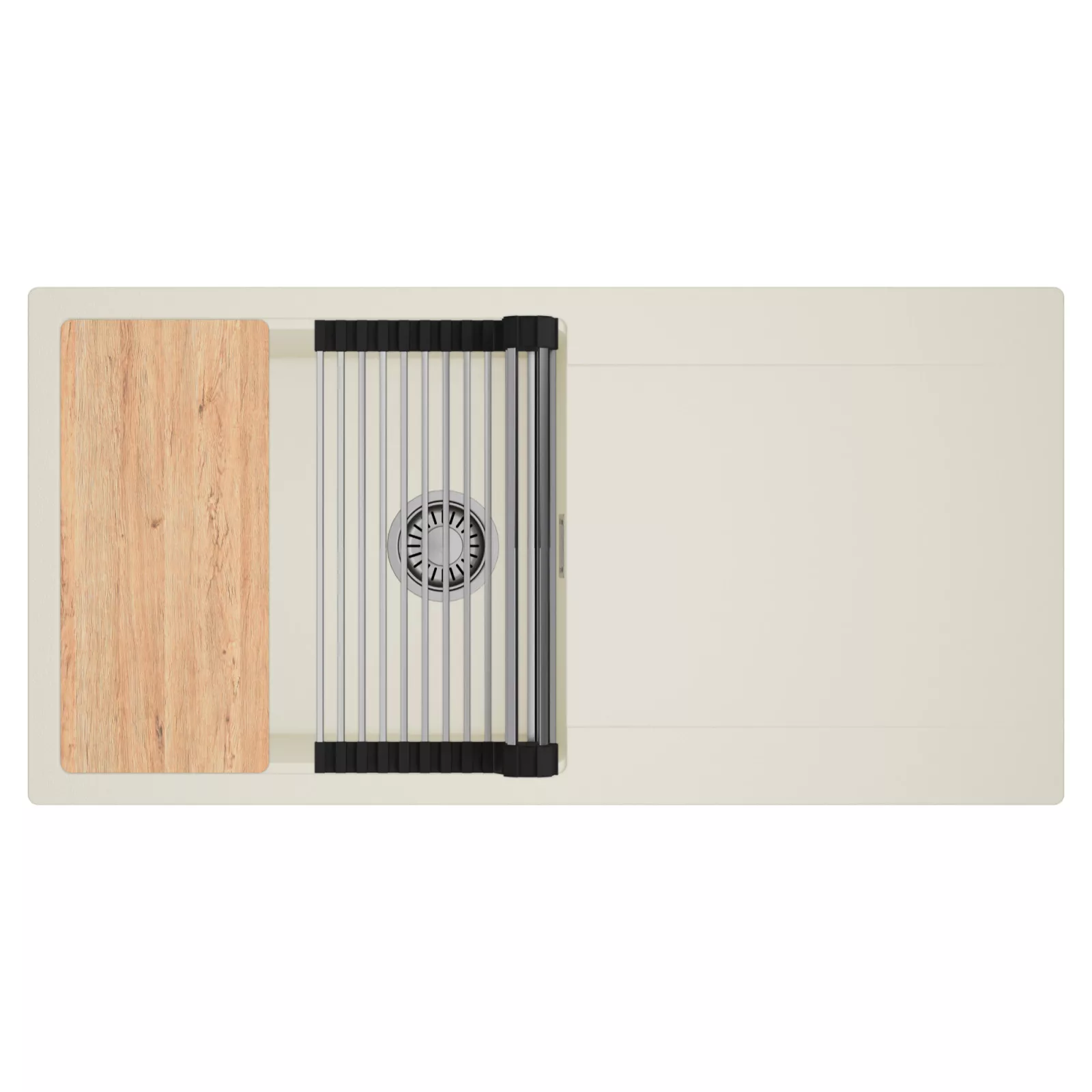 HD Onyx White 100 egymedencés mosogatótálca szett, vágódeszkával és csepegtetőráccsal, tört fehér