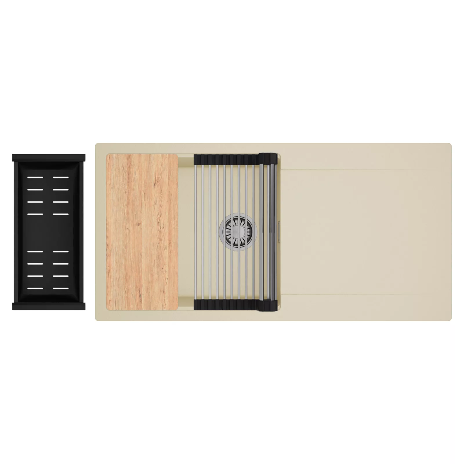 HD Onyx Beige 100 egymedencés mosogatótálca szett, vágódeszkával, csepegtetőráccsal és kosárral, soft bézs