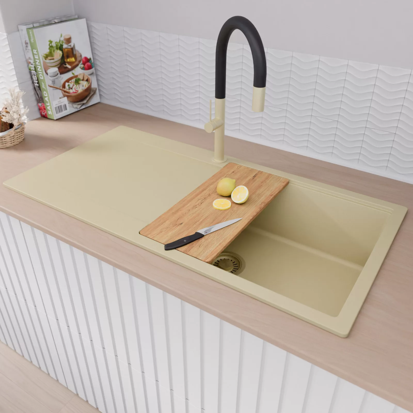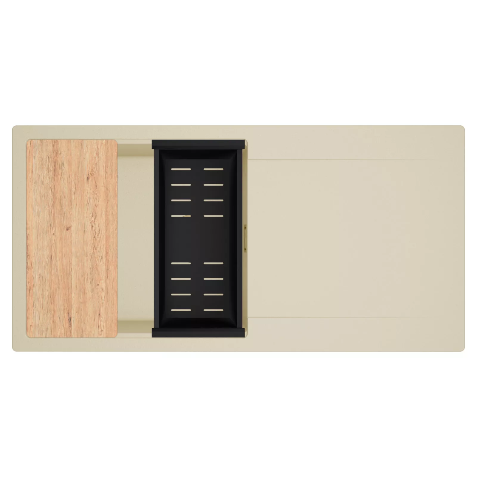 HD Onyx Beige 100 egymedencés mosogatótálca szett, vágódeszkával és csepegtetőkosárral, soft bézs