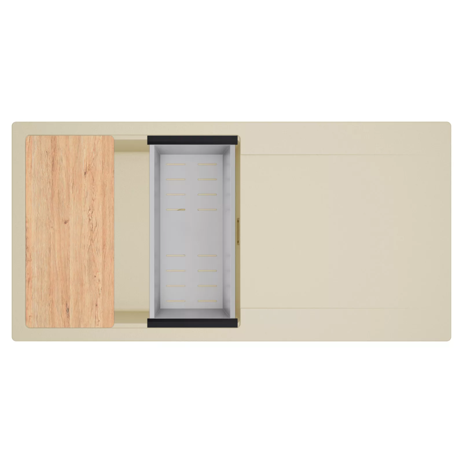 HD Onyx Beige 100 egymedencés mosogatótálca szett, vágódeszkával és csepegtetőkosárral, soft bézs