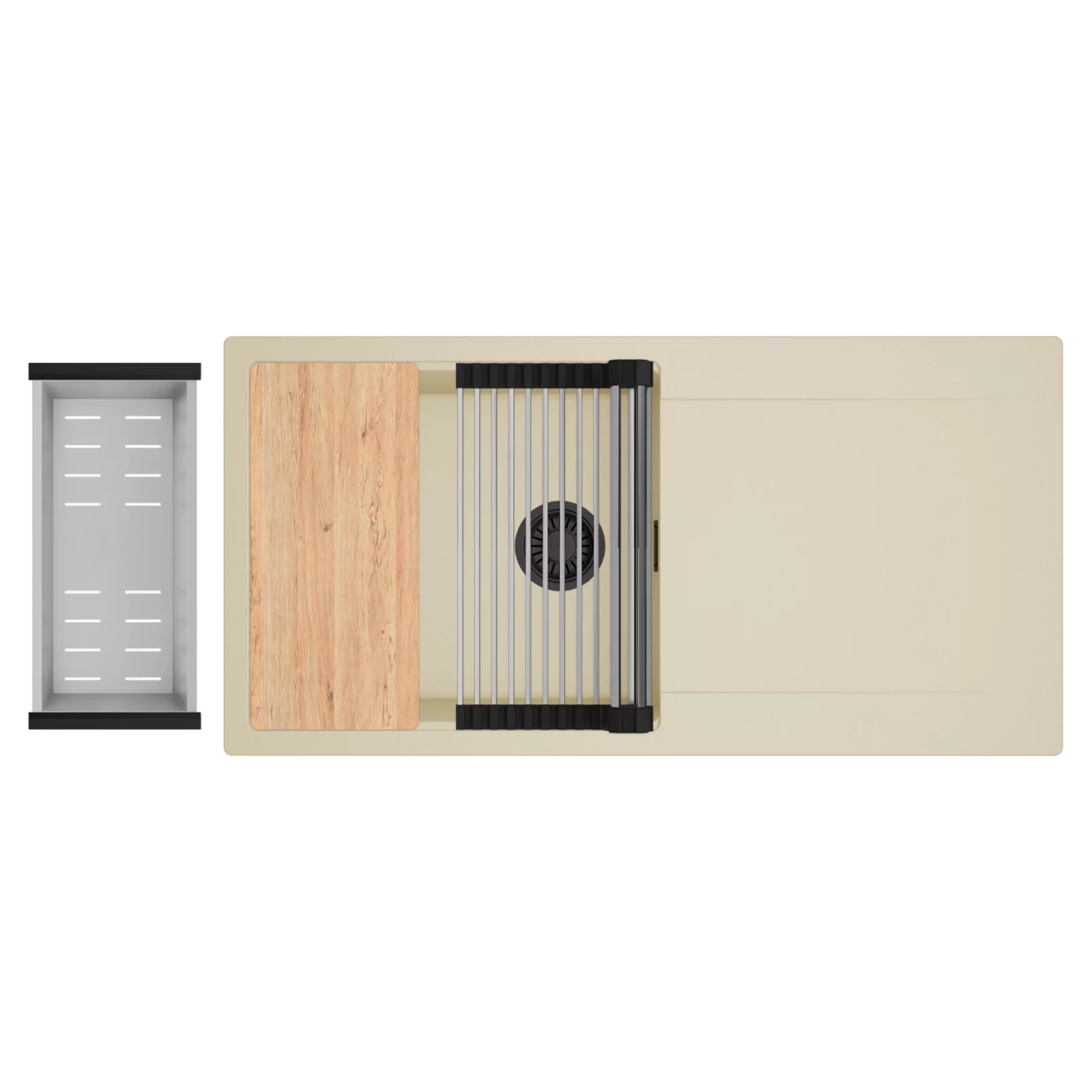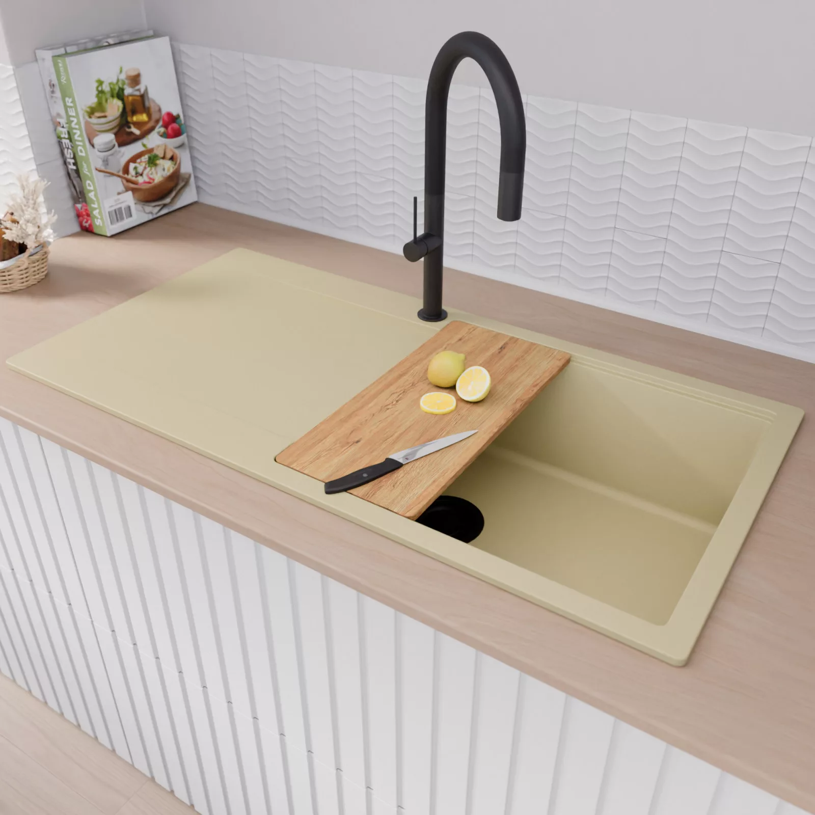 HD Onyx Beige 100 egymedencés mosogatótálca szett, vágódeszkával, csepegtetőráccsal és kosárral, soft bézs