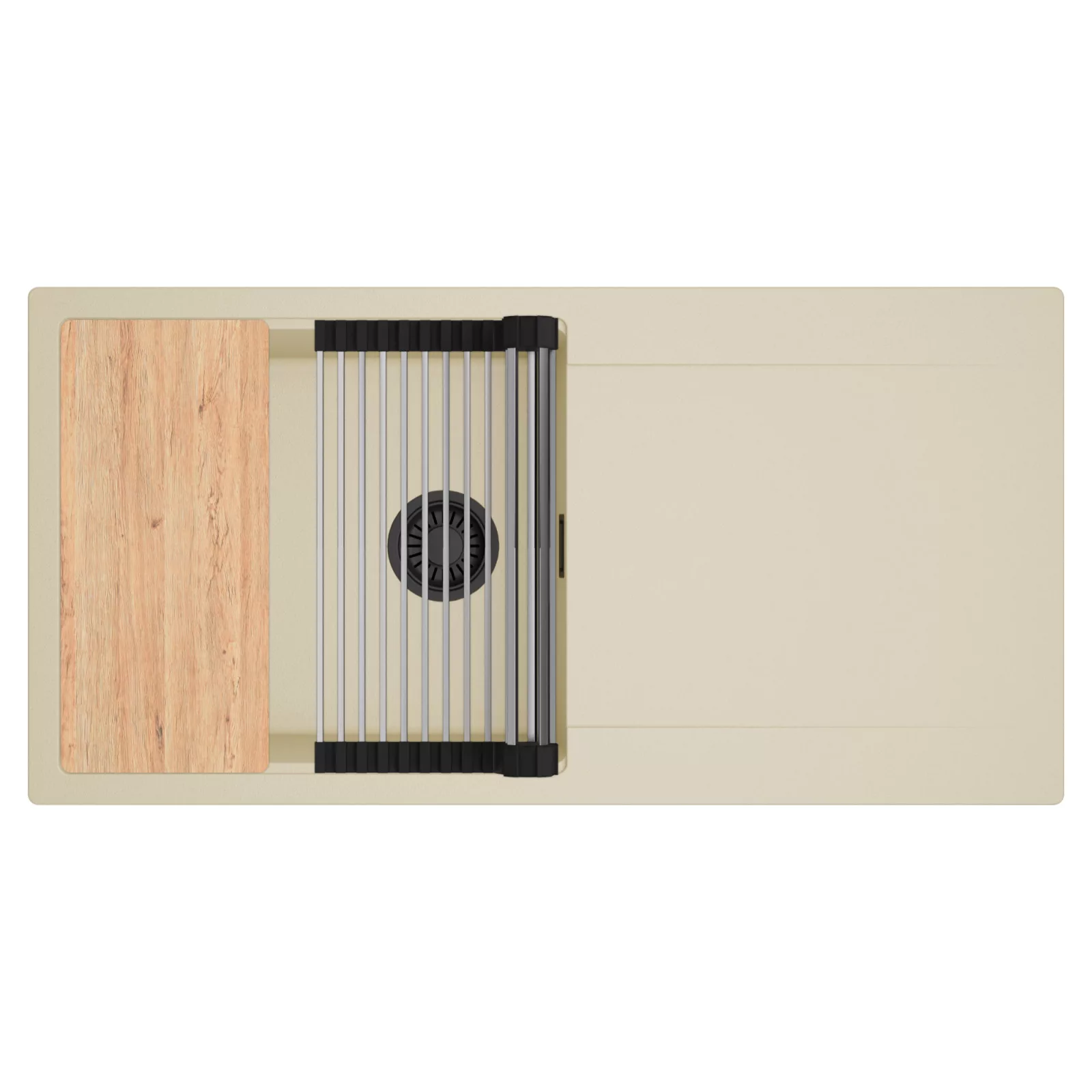 HD Onyx Beige 100 egymedencés mosogatótálca szett, vágódeszkával és csepegtetőráccsal, soft bézs