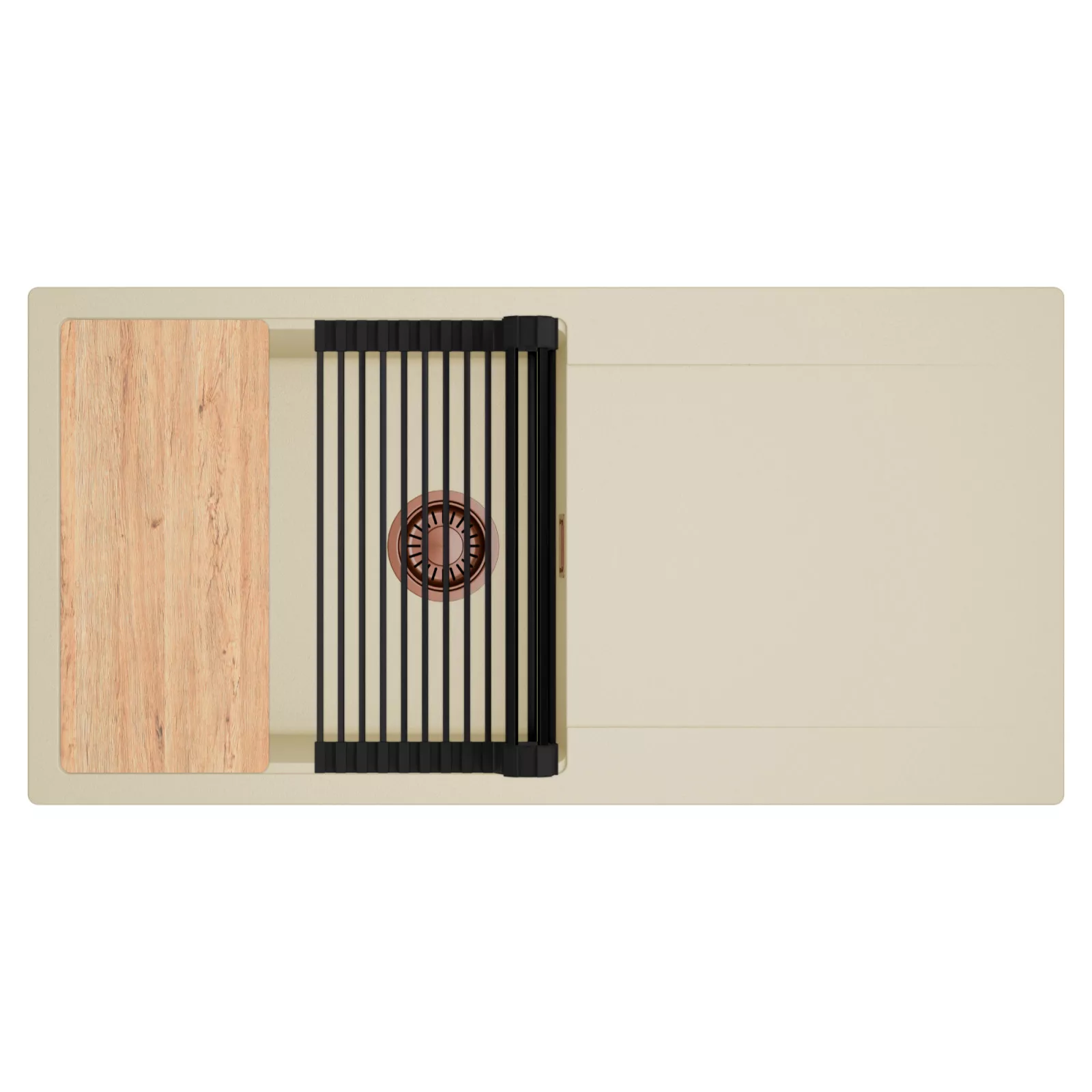 HD Onyx Beige 100 egymedencés mosogatótálca szett, vágódeszkával és csepegtetőráccsal, soft bézs