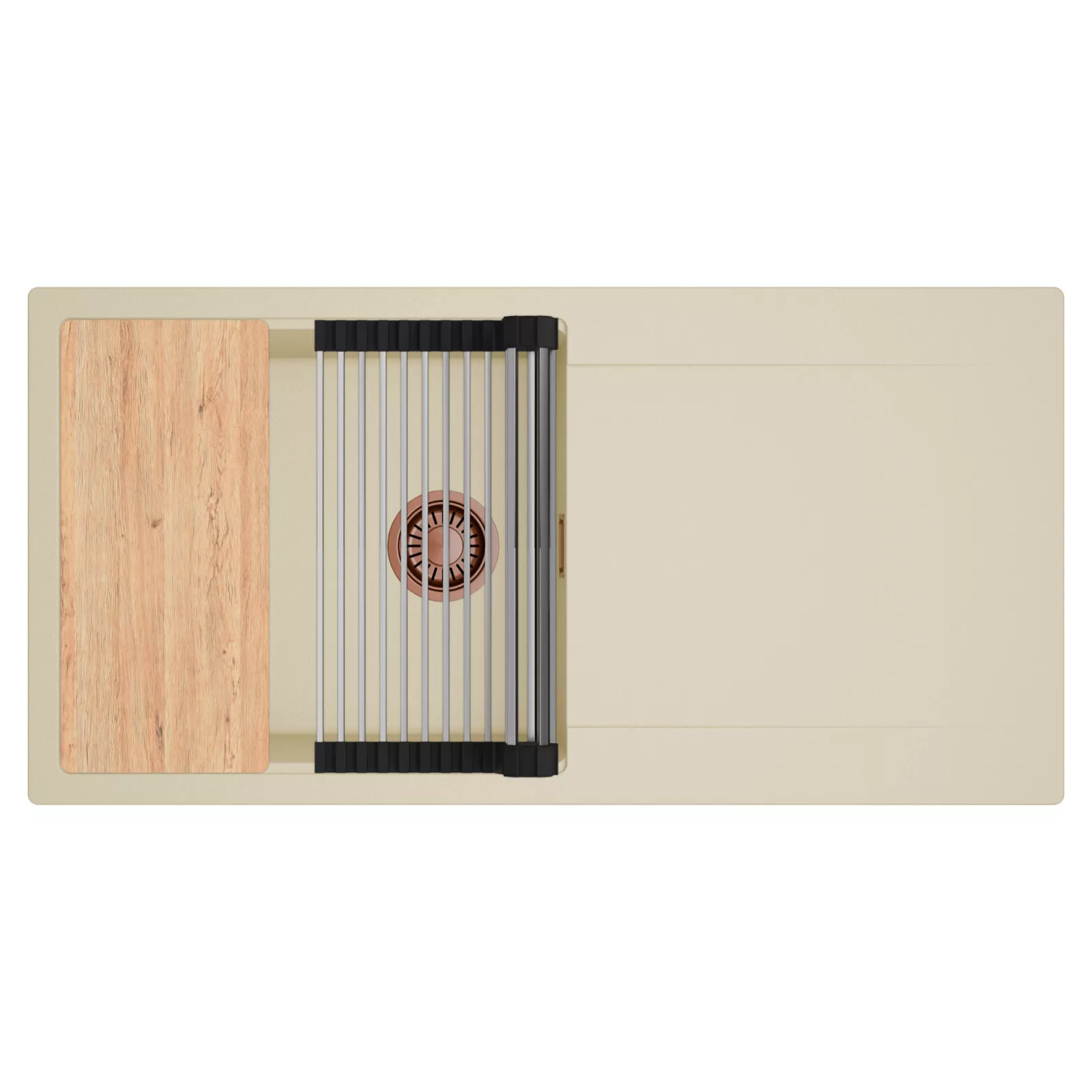 HD Onyx Beige 100 egymedencés mosogatótálca szett, vágódeszkával és csepegtetőráccsal, soft bézs