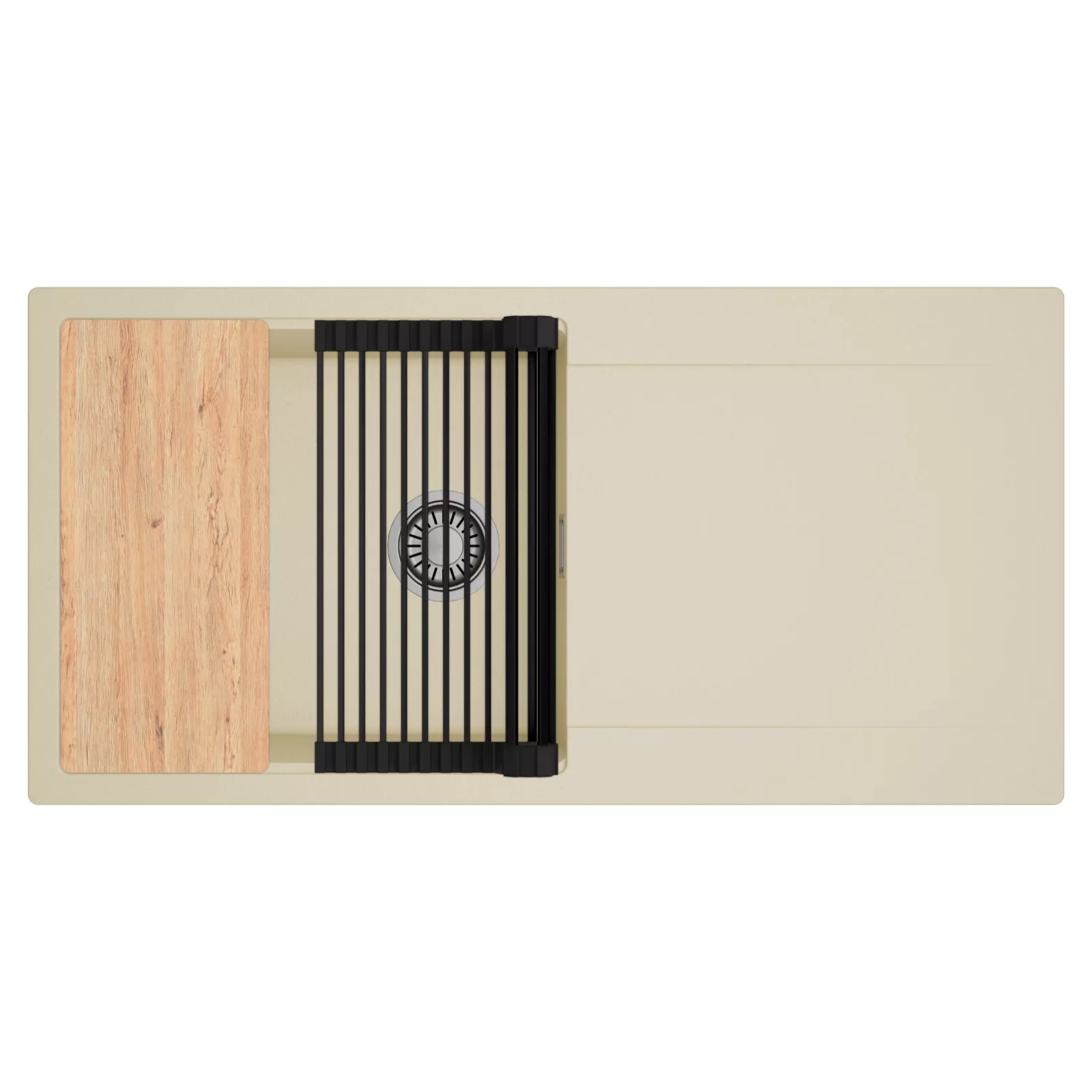 HD Onyx Beige 100 egymedencés mosogatótálca szett, vágódeszkával és csepegtetőráccsal, soft bézs