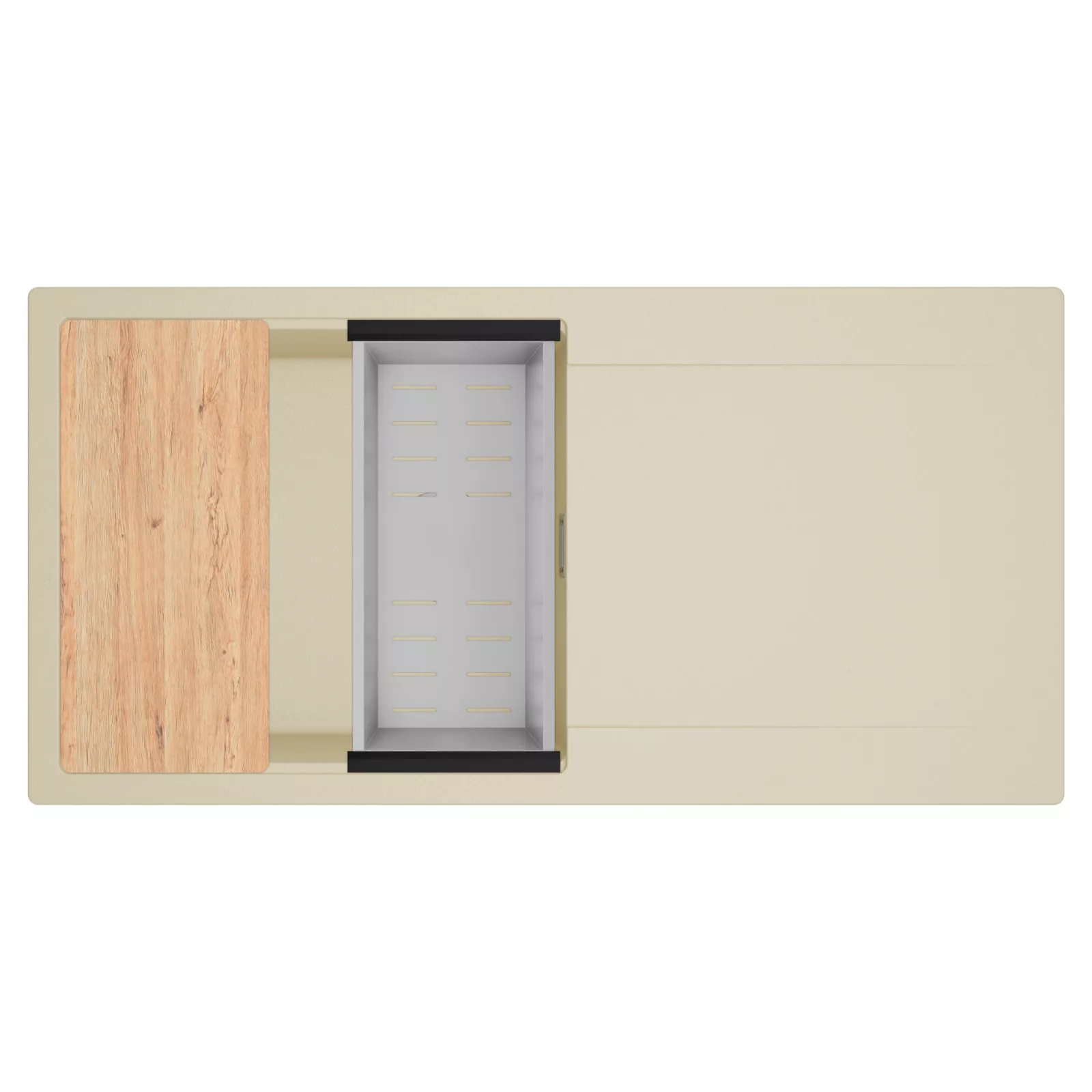 HD Onyx Beige 100 egymedencés mosogatótálca szett, vágódeszkával és csepegtetőkosárral, soft bézs