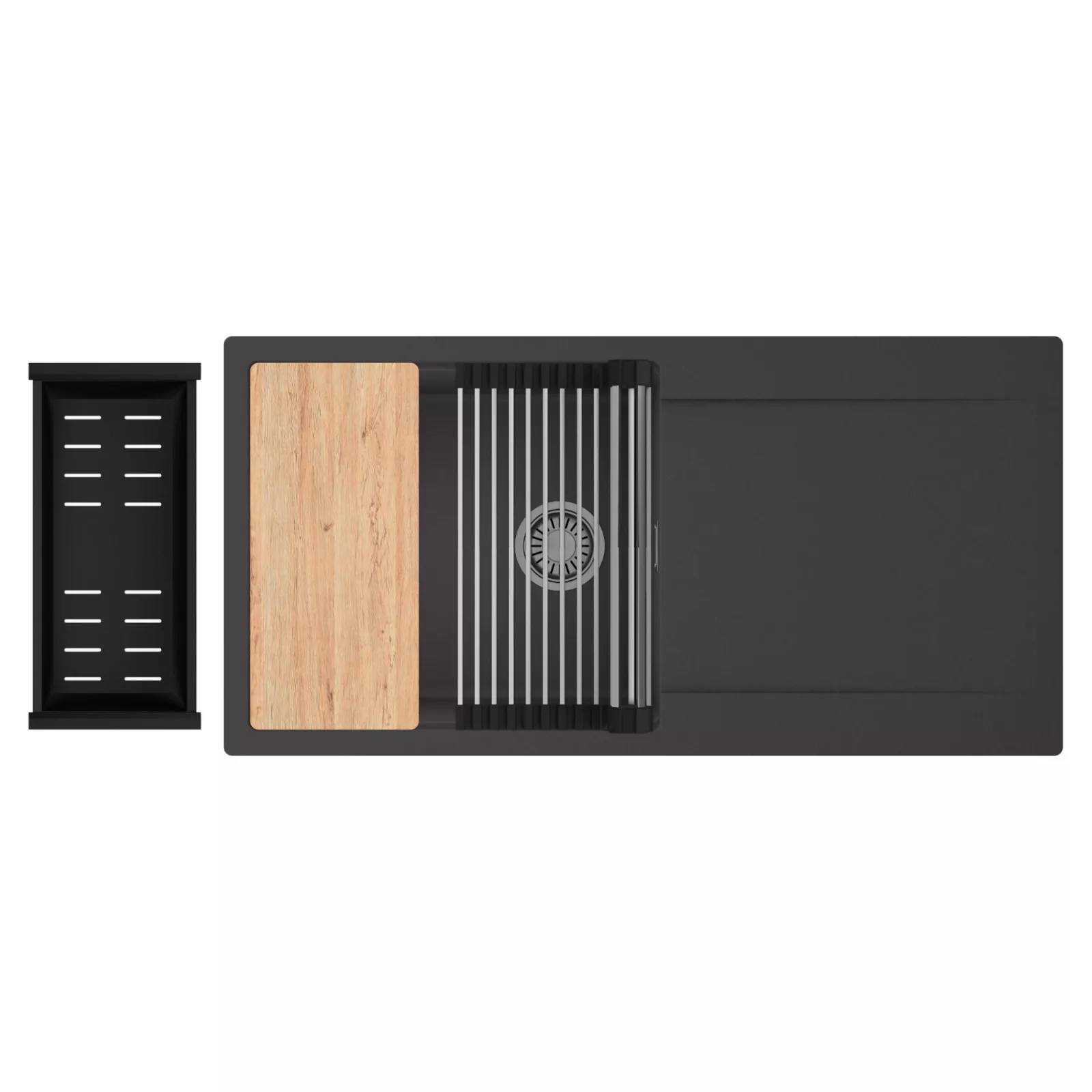 HD Onyx 100 egymedencés mosogatótálca szett, vágódeszkával, csepegtetőráccsal és kosárral, matt antracit
