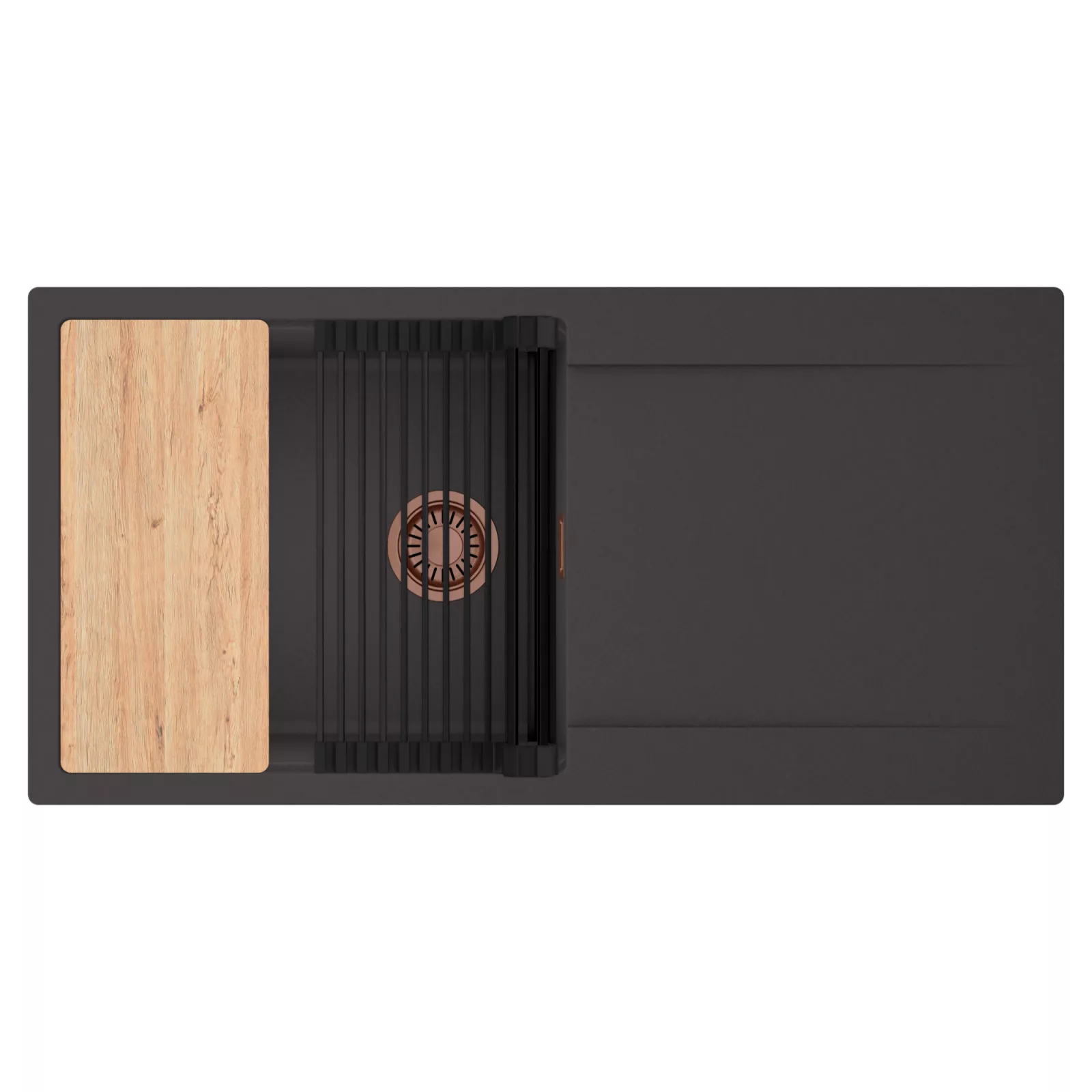 HD Onyx 100 egymedencés mosogatótálca szett, vágódeszkával és csepegtetőráccsal, matt antracit