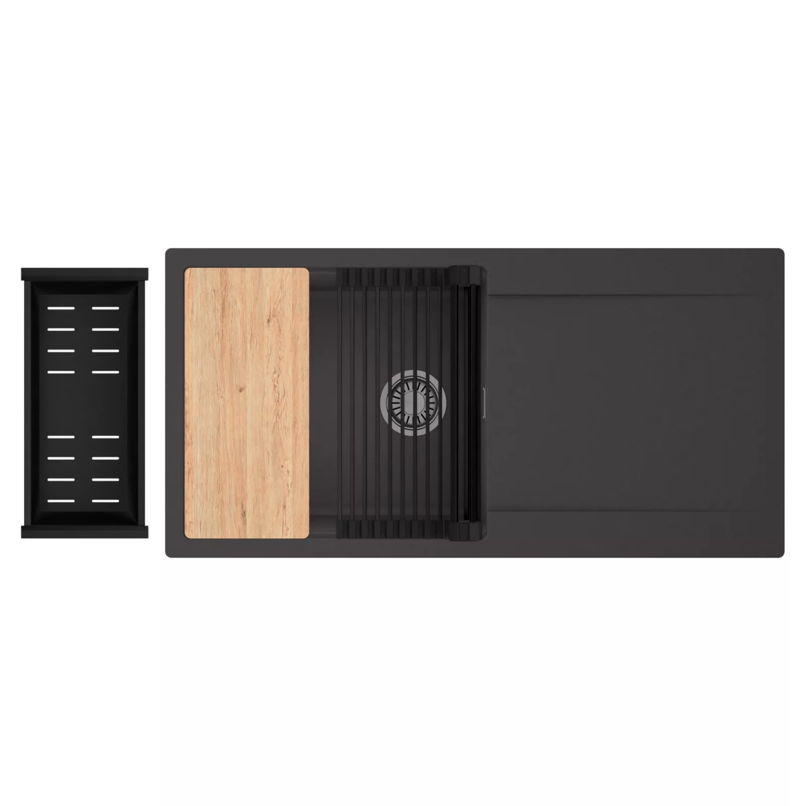 HD Onyx 100 egymedencés mosogatótálca szett, vágódeszkával, csepegtetőráccsal és kosárral, matt antracit
