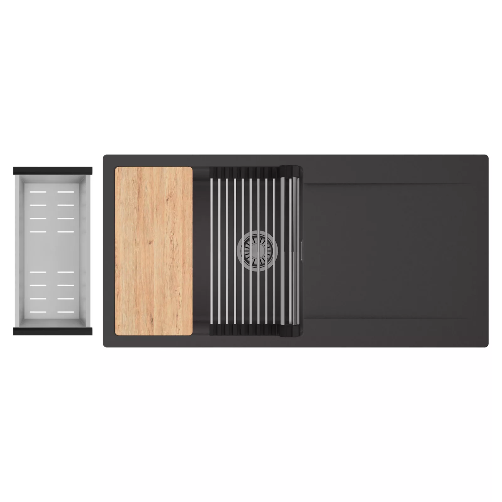 HD Onyx 100 egymedencés mosogatótálca szett, vágódeszkával, csepegtetőráccsal és kosárral, matt antracit