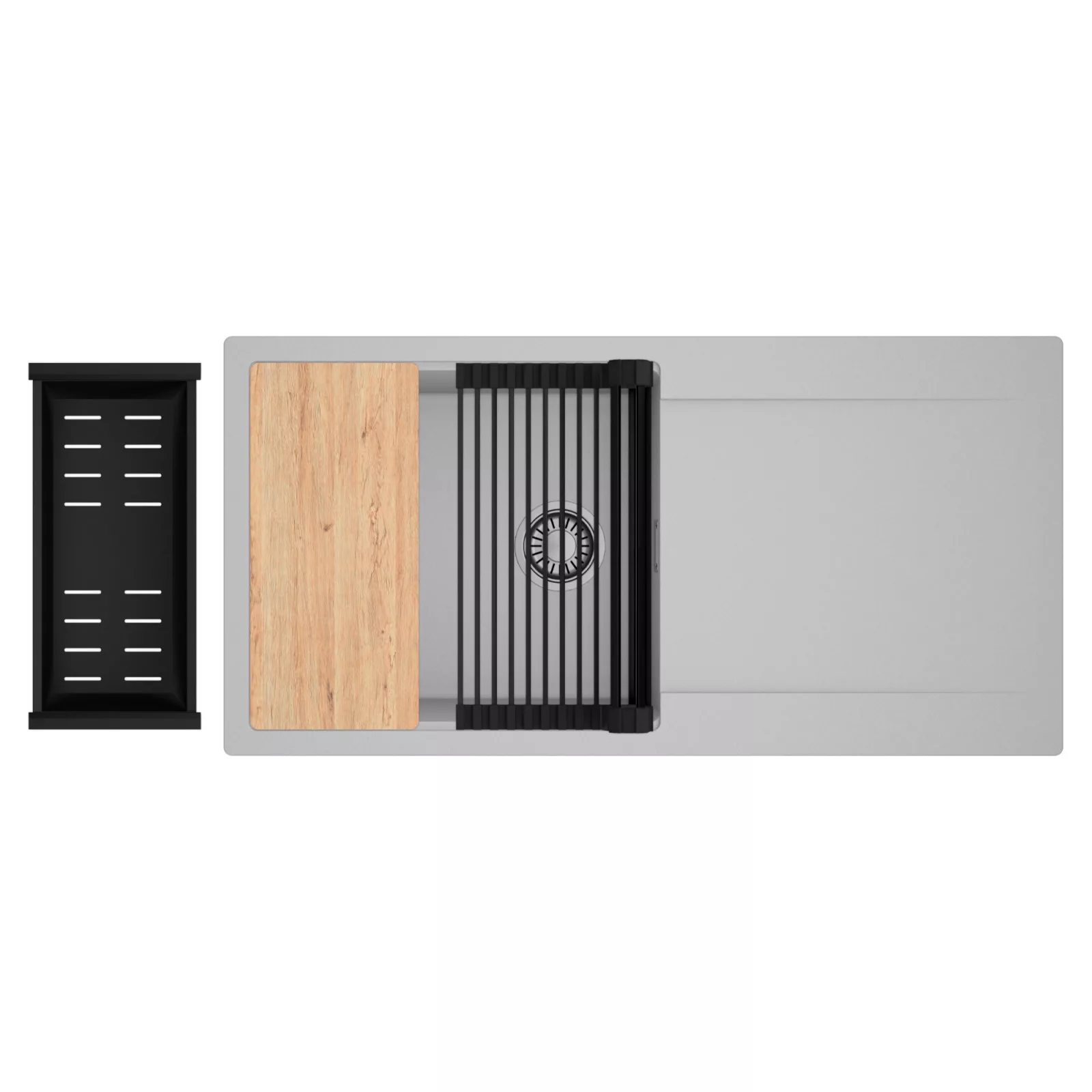 HD Onyx Grey 100 egymedencés mosogatótálca szett, vágódeszkával, csepegtetőráccsal és kosárral, alpesi szürke