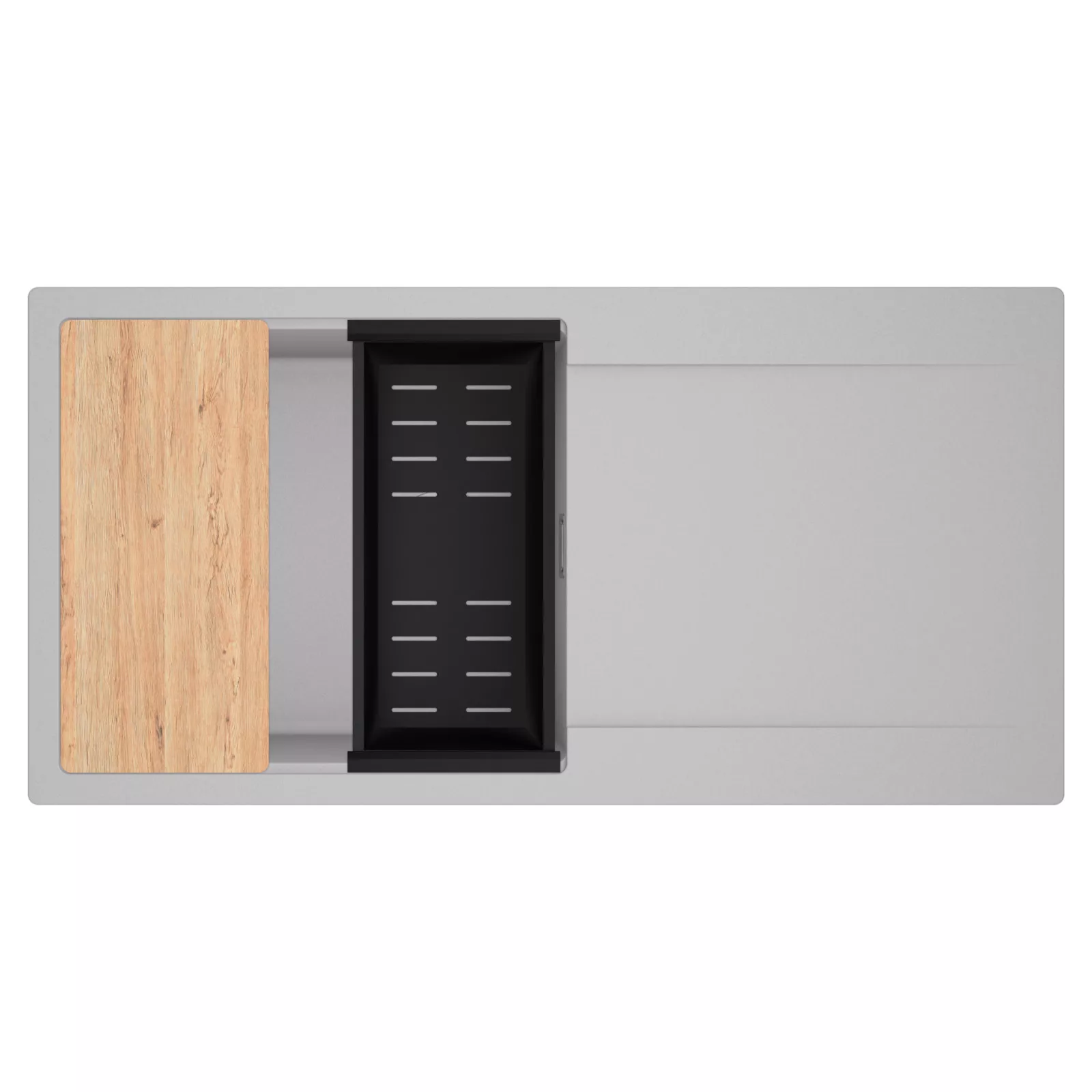 HD Onyx Grey 100 egymedencés mosogatótálca szett, vágódeszkával és csepegtetőkosárral, alpesi szürke