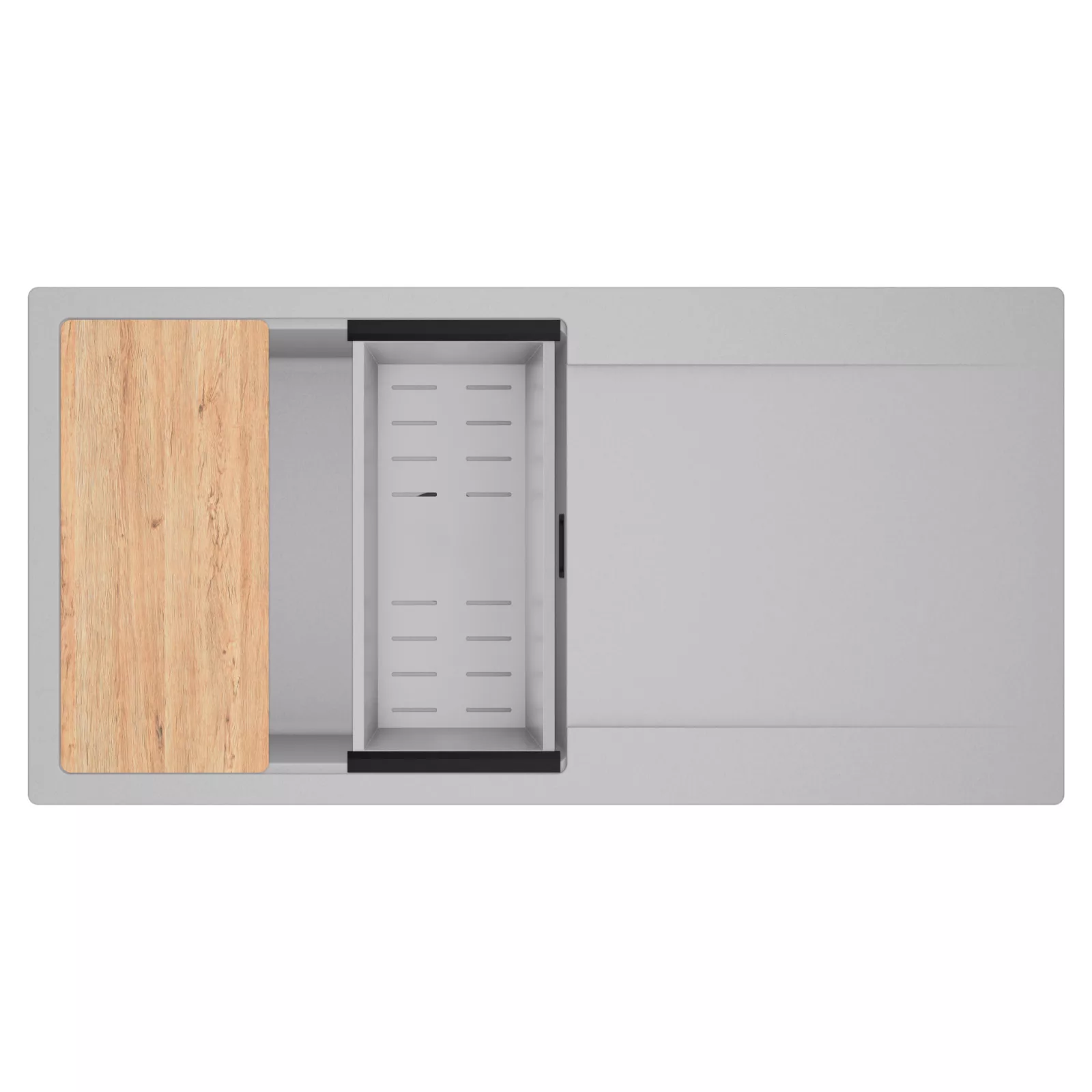 HD Onyx Grey 100 egymedencés mosogatótálca szett, vágódeszkával és csepegtetőkosárral, alpesi szürke