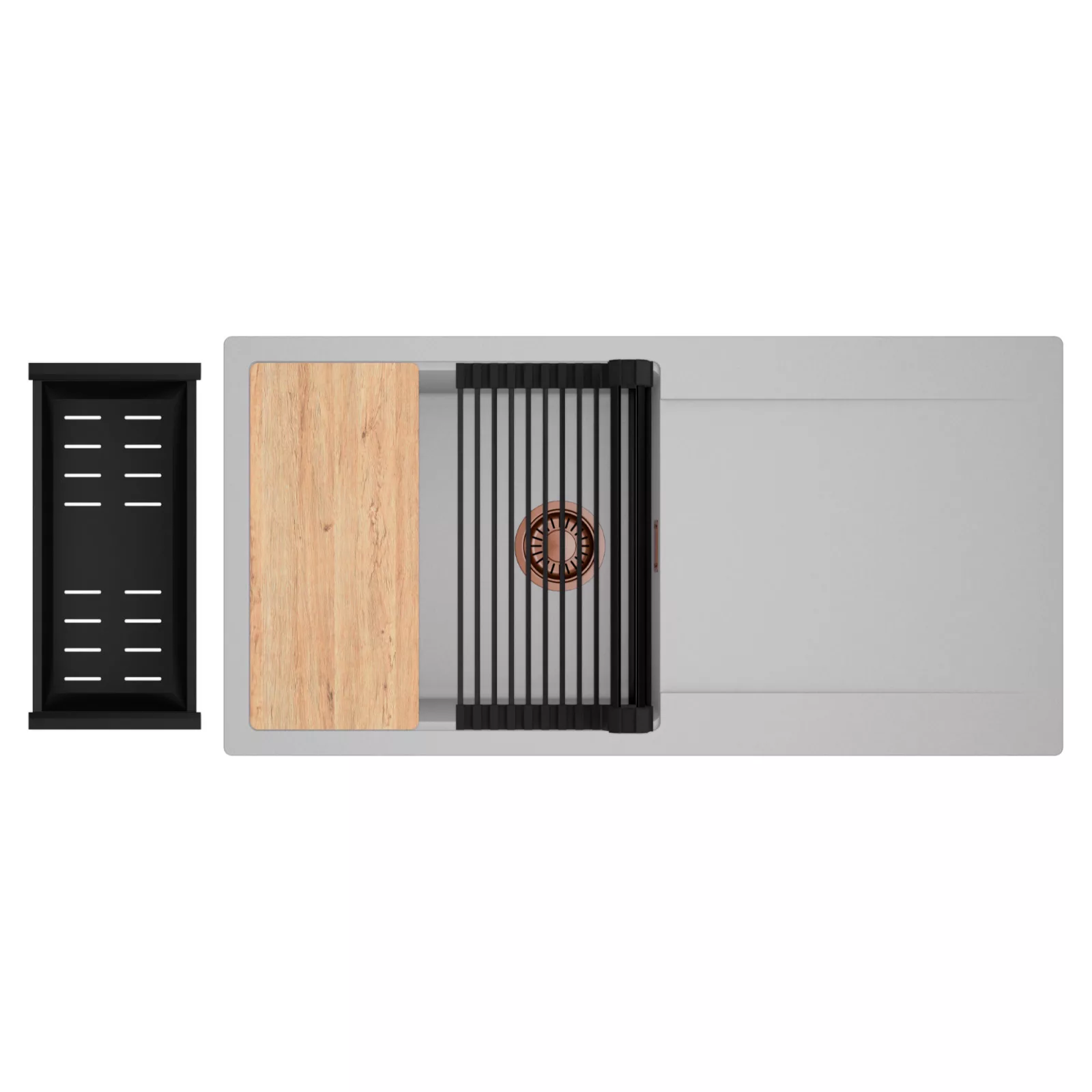 HD Onyx Grey 100 egymedencés mosogatótálca szett, vágódeszkával, csepegtetőráccsal és kosárral, alpesi szürke