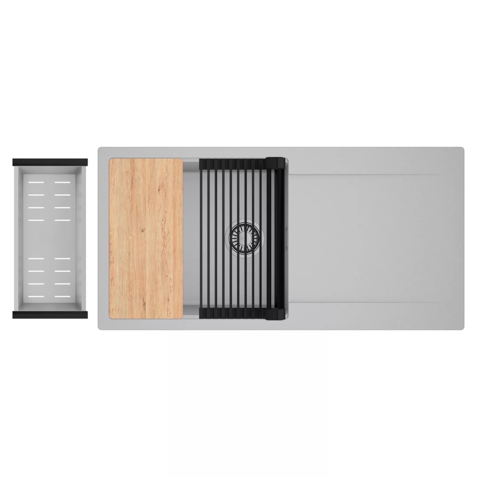 HD Onyx Grey 100 egymedencés mosogatótálca szett, vágódeszkával, csepegtetőráccsal és kosárral, alpesi szürke