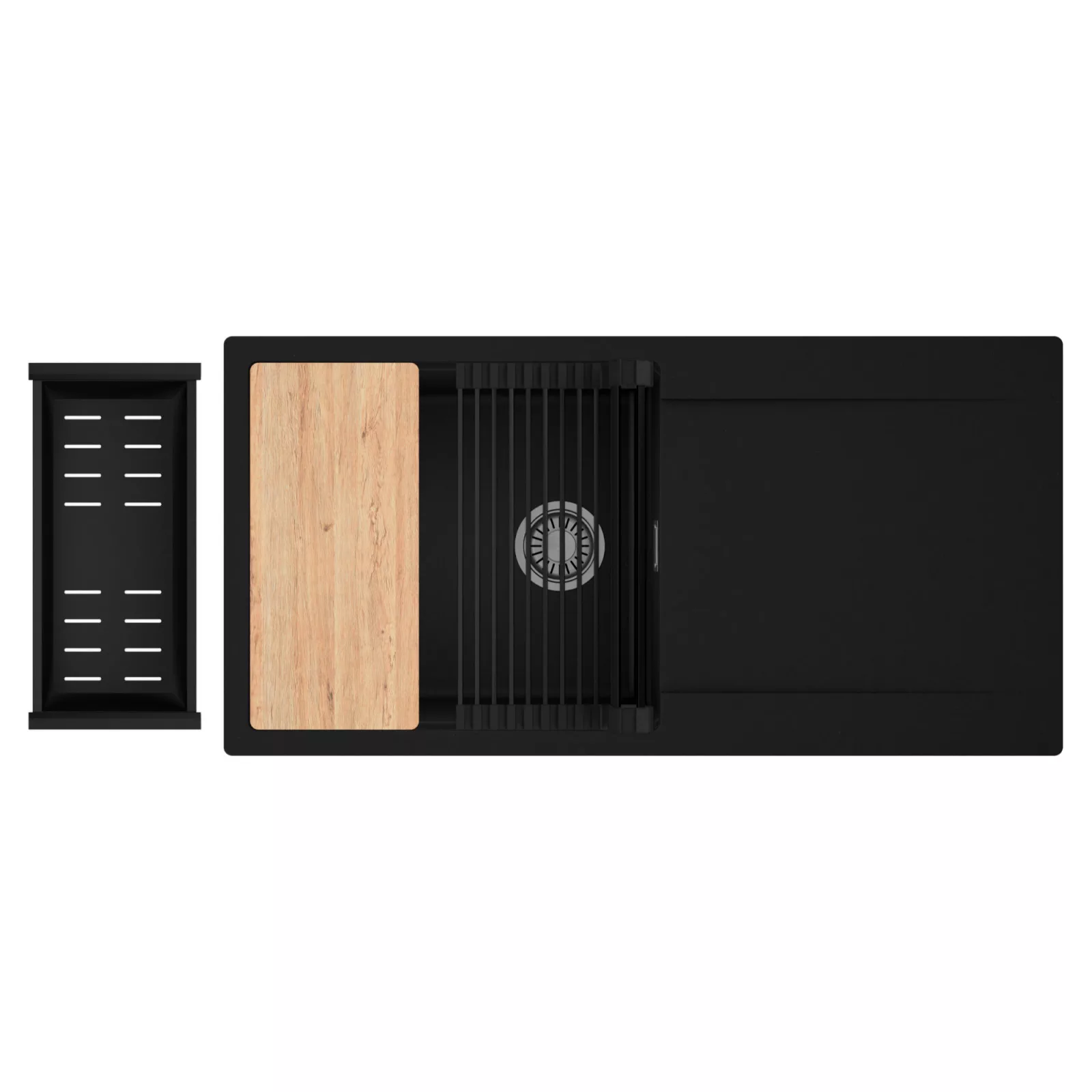 HD Onyx 100 egymedencés mosogatótálca szett, vágódeszkával, csepegtetőráccsal és kosárral, matt fekete