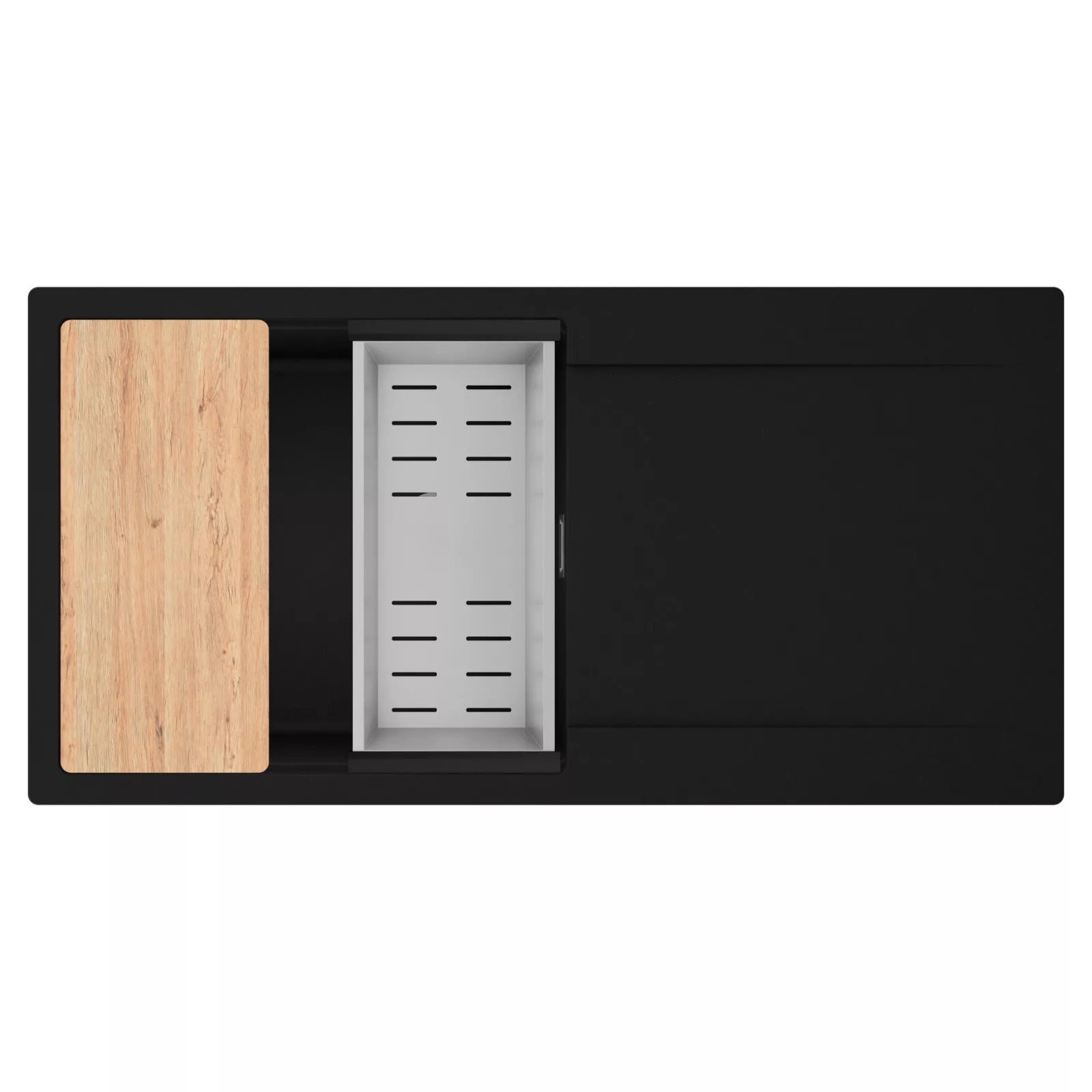 HD Onyx 100 egymedencés mosogatótálca szett, vágódeszkával és csepegtetőkosárral, matt fekete
