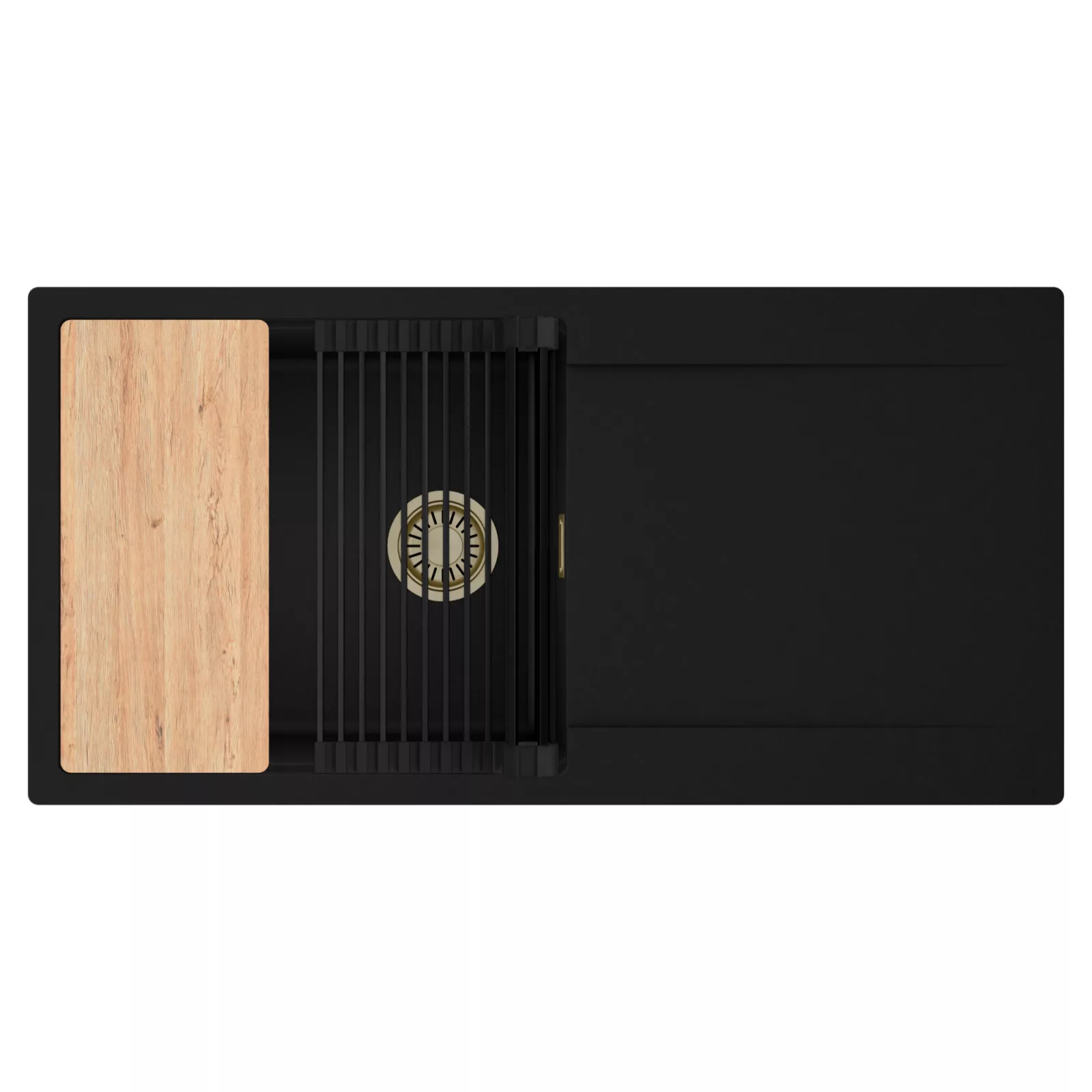 HD Onyx 100 egymedencés mosogatótálca szett, vágódeszkával és csepegtetőráccsal, matt fekete