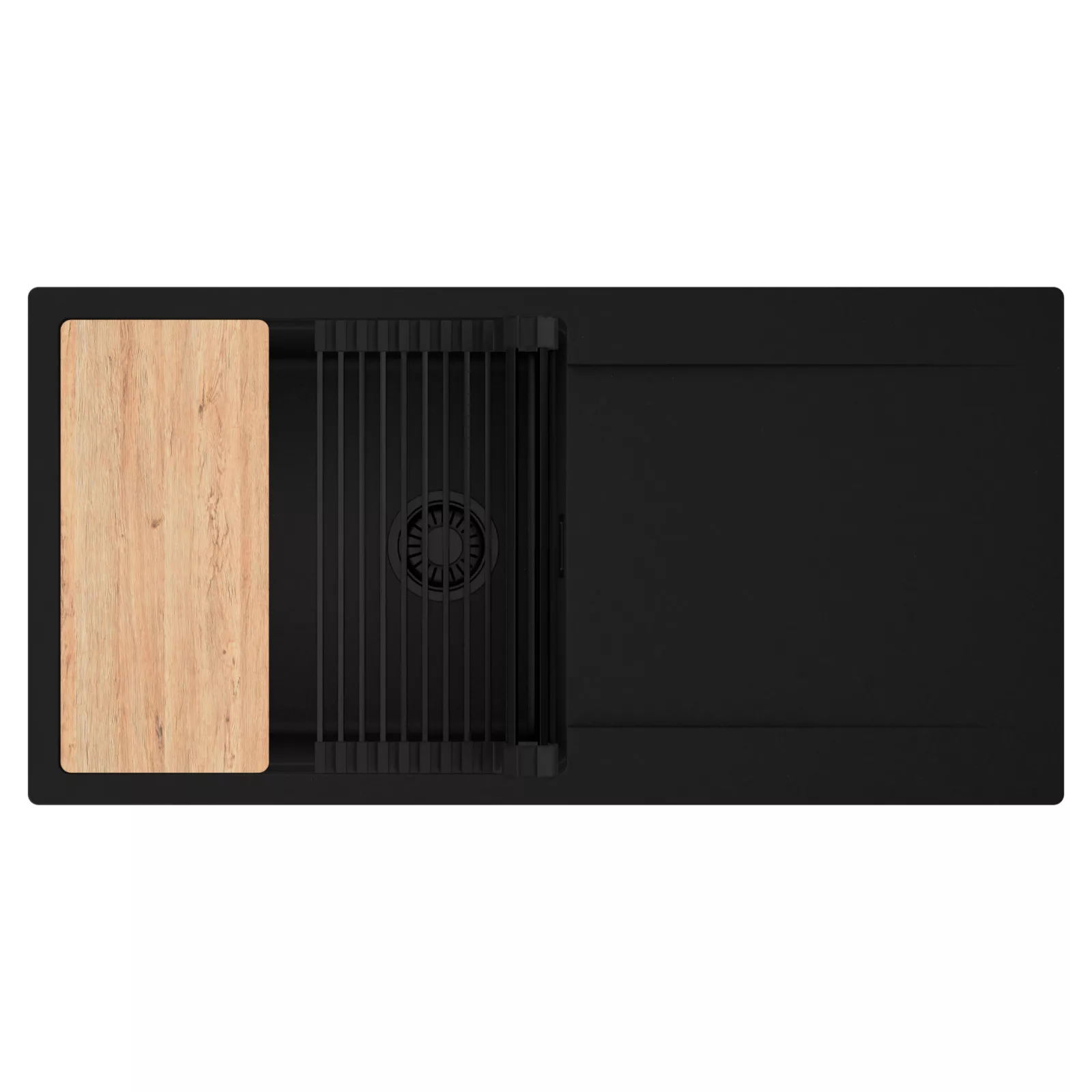HD Onyx 100 egymedencés mosogatótálca szett, vágódeszkával és csepegtetőráccsal, matt fekete