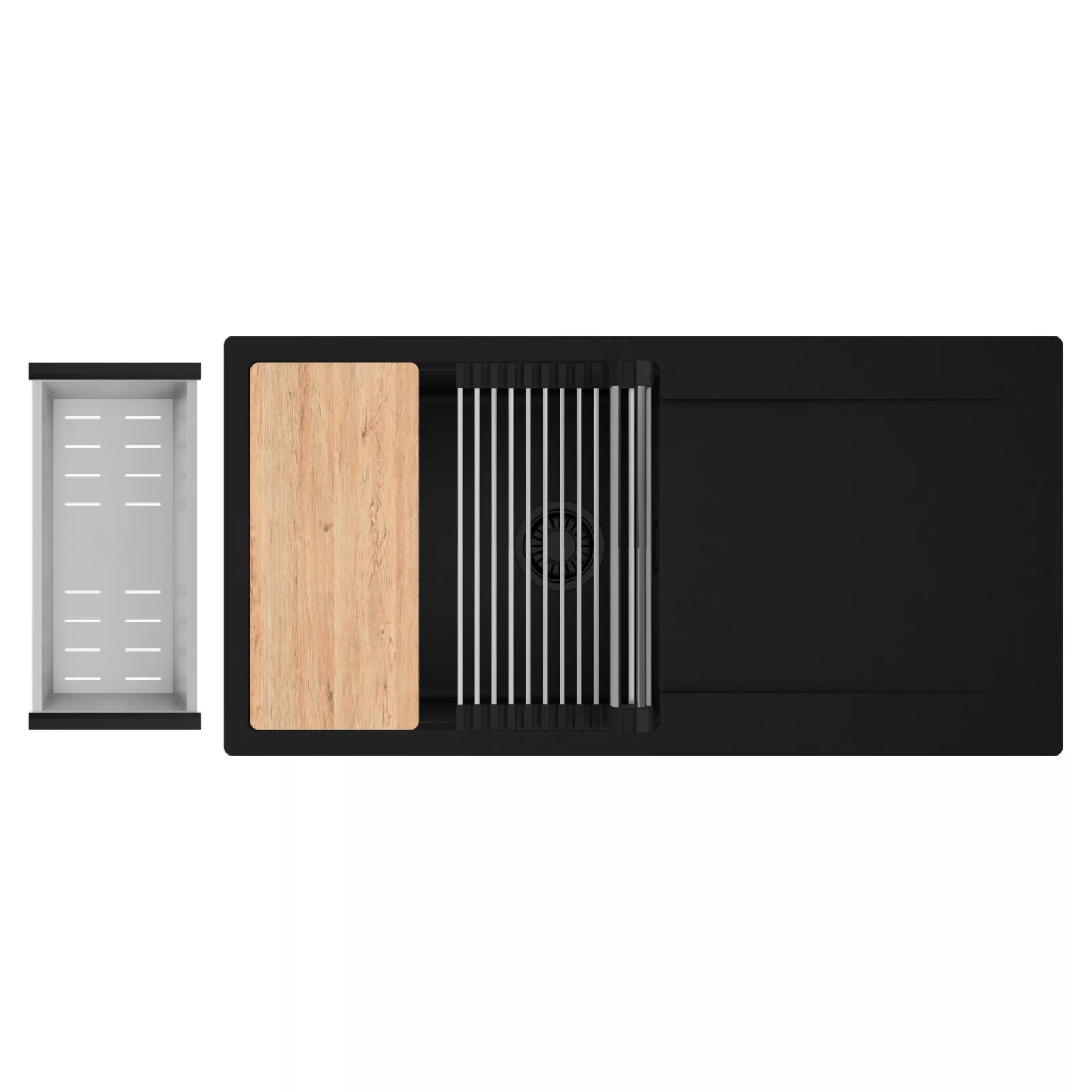 HD Onyx 100 egymedencés mosogatótálca szett, vágódeszkával, csepegtetőráccsal és kosárral, matt fekete
