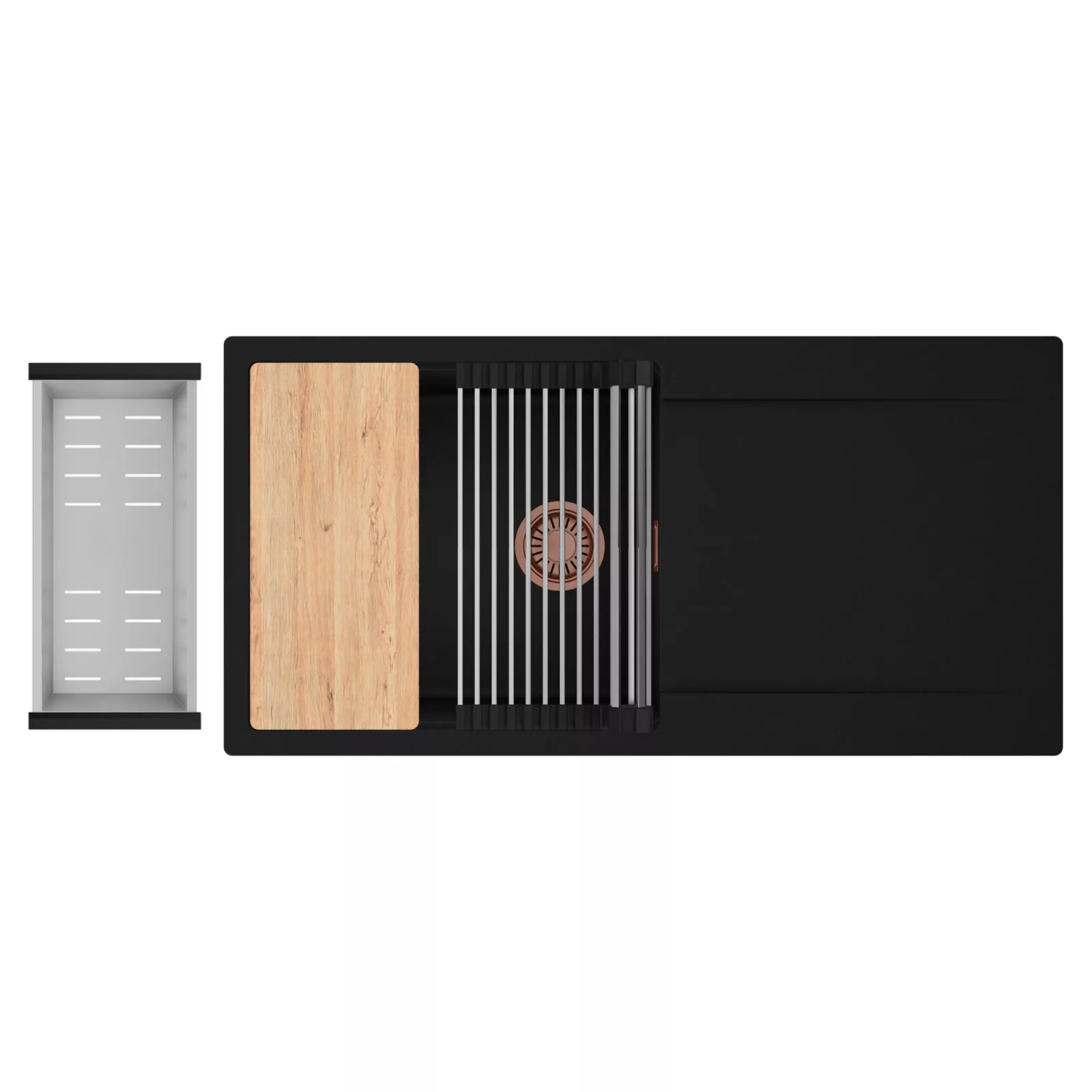 HD Onyx 100 egymedencés mosogatótálca szett, vágódeszkával, csepegtetőráccsal és kosárral, matt fekete