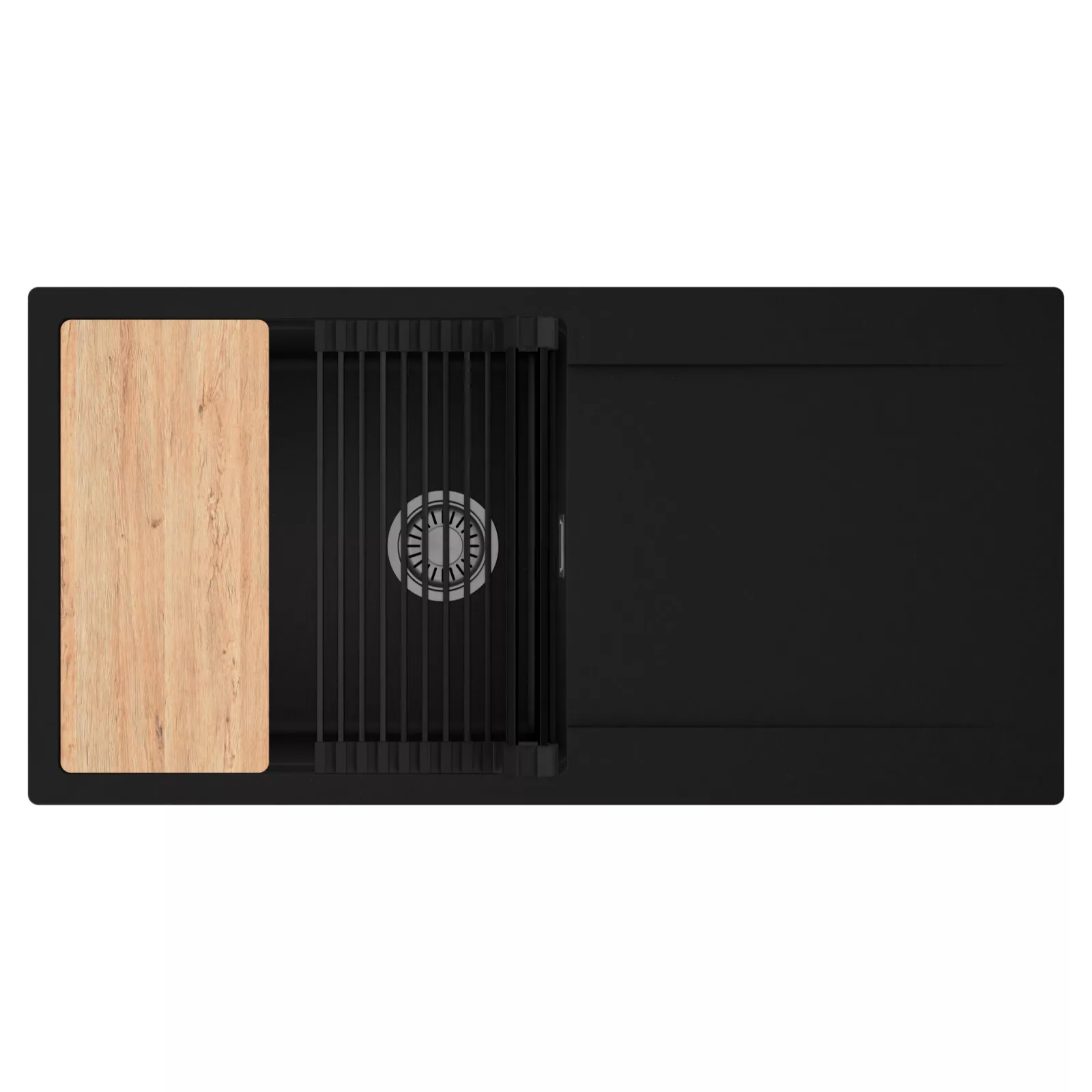 HD Onyx 100 egymedencés mosogatótálca szett, vágódeszkával és csepegtetőráccsal, matt fekete