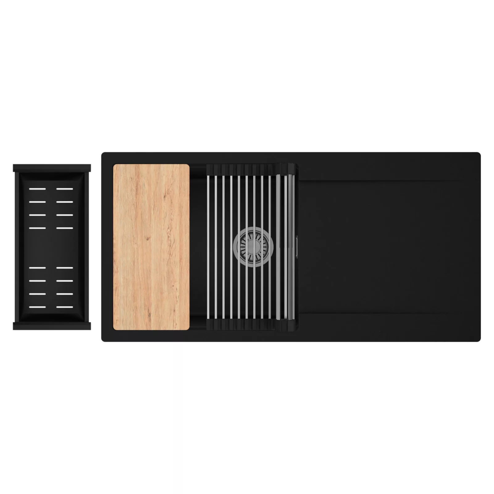 HD Onyx 100 egymedencés mosogatótálca szett, vágódeszkával, csepegtetőráccsal és kosárral, matt fekete