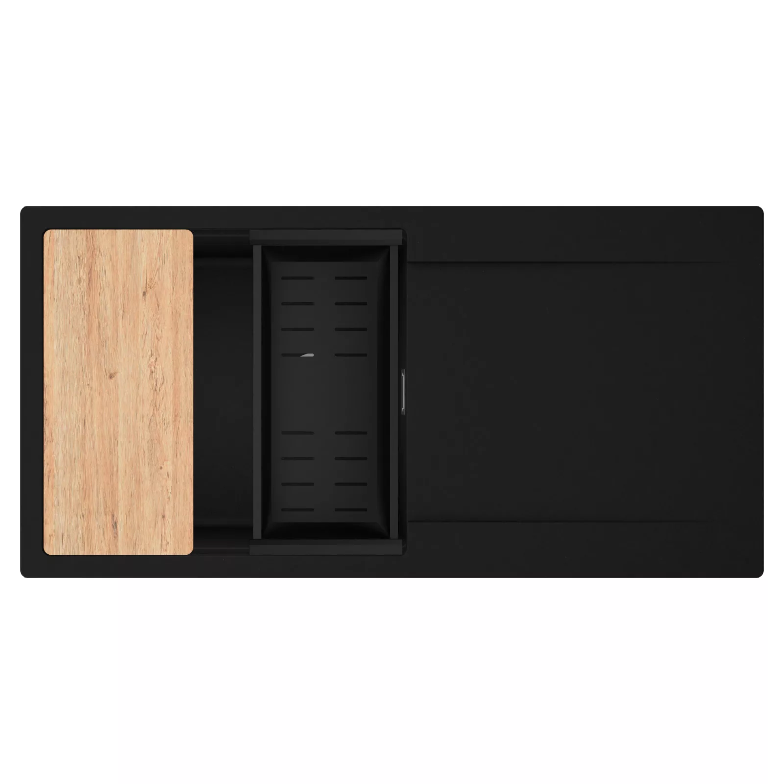 HD Onyx 100 egymedencés mosogatótálca szett, vágódeszkával és csepegtetőkosárral, matt fekete