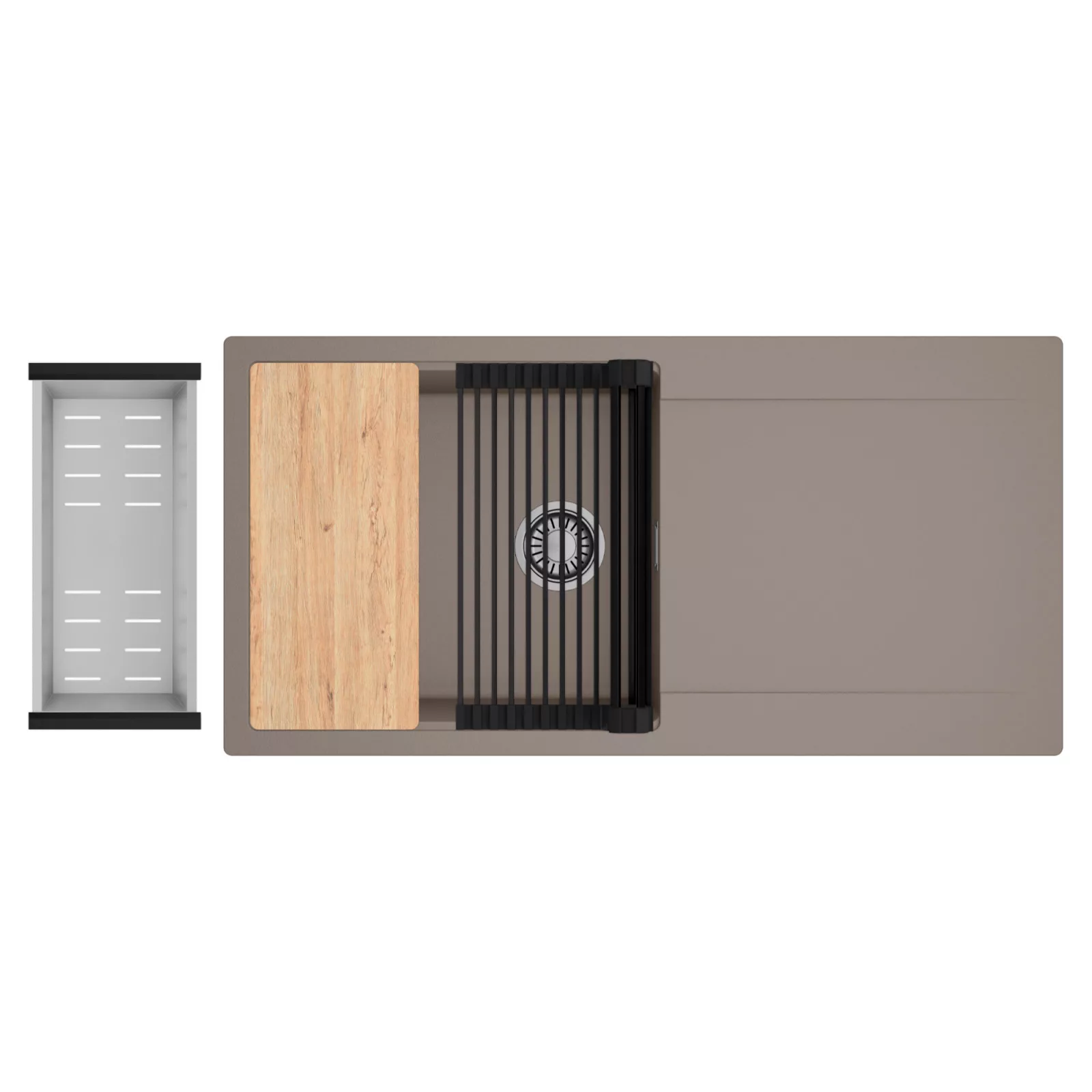 HD Onyx Tortora 100 egymedencés mosogatótálca szett, vágódeszkával, csepegtetőráccsal és kosárral, tortora