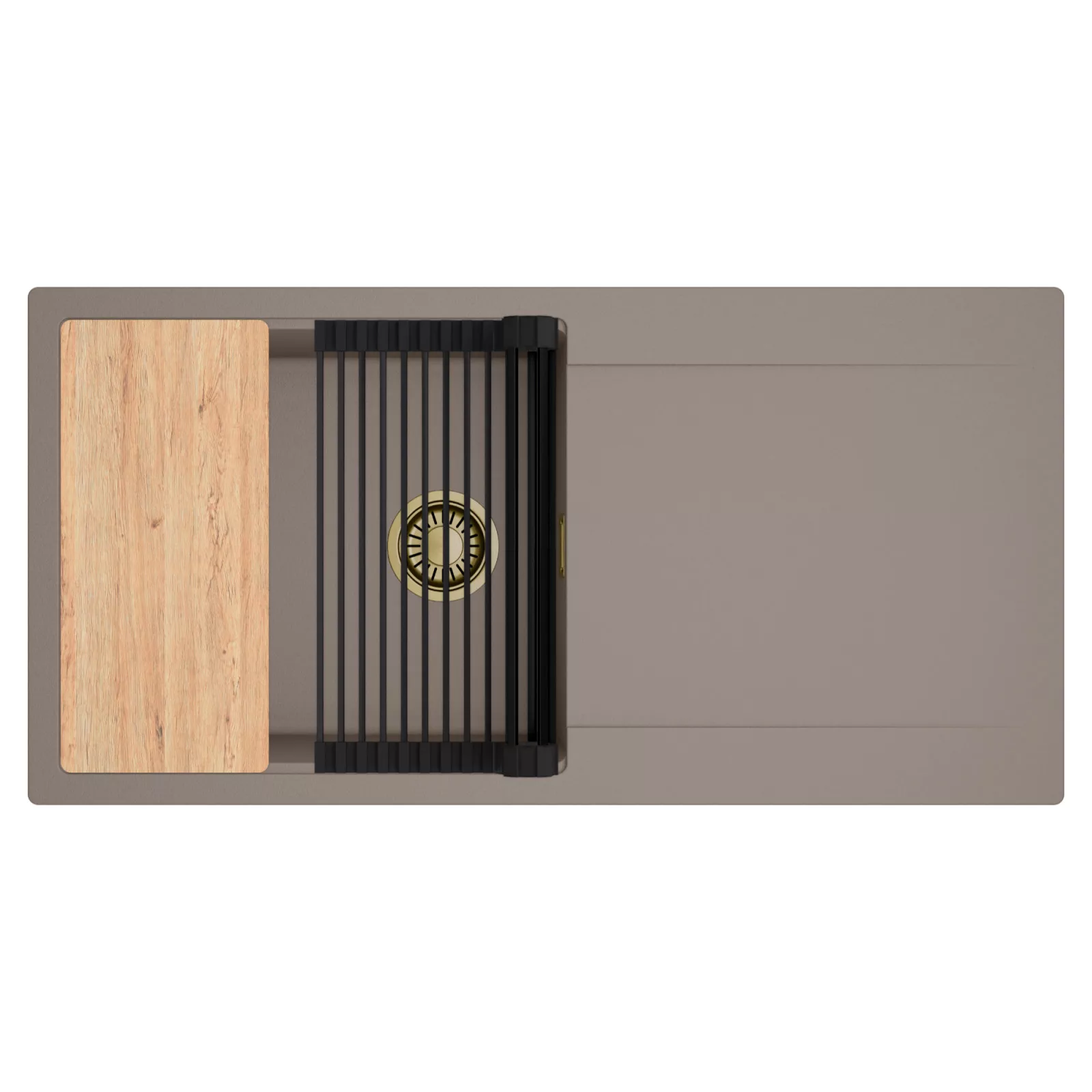 HD Onyx Tortora 100 egymedencés mosogatótálca szett, vágódeszkával és csepegtetőráccsal, tortora