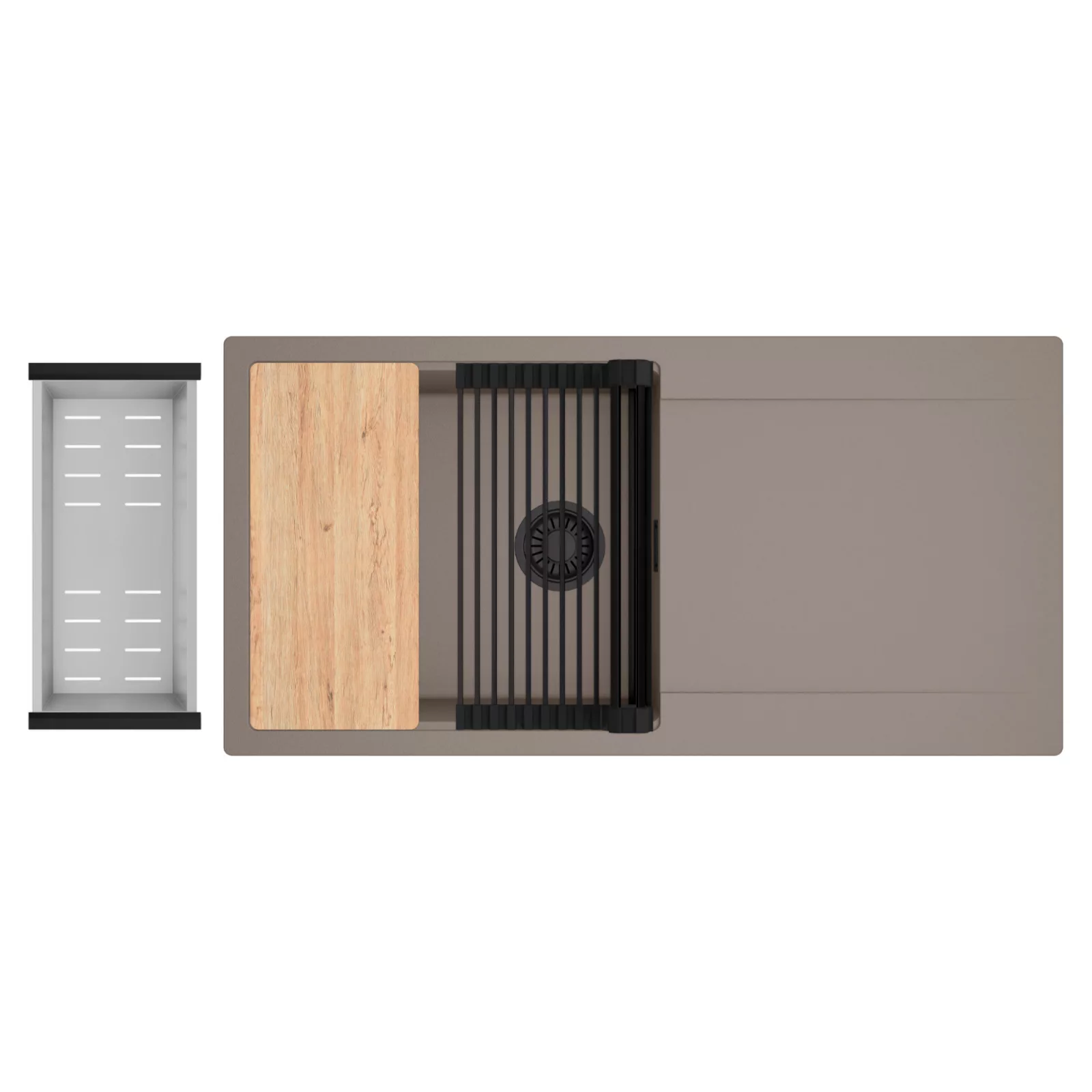 HD Onyx Tortora 100 egymedencés mosogatótálca szett, vágódeszkával, csepegtetőráccsal és kosárral, tortora