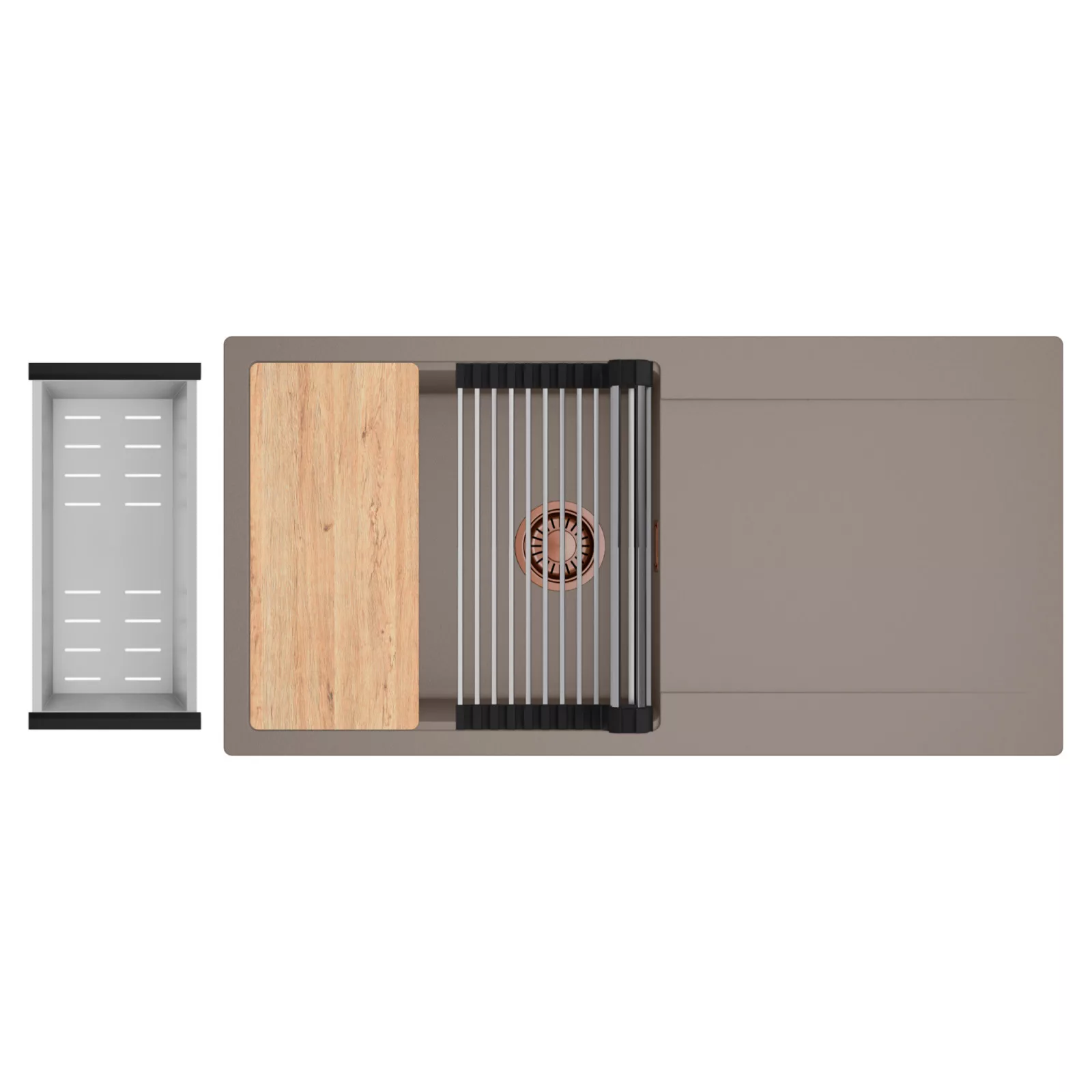 HD Onyx Tortora 100 egymedencés mosogatótálca szett, vágódeszkával, csepegtetőráccsal és kosárral, tortora