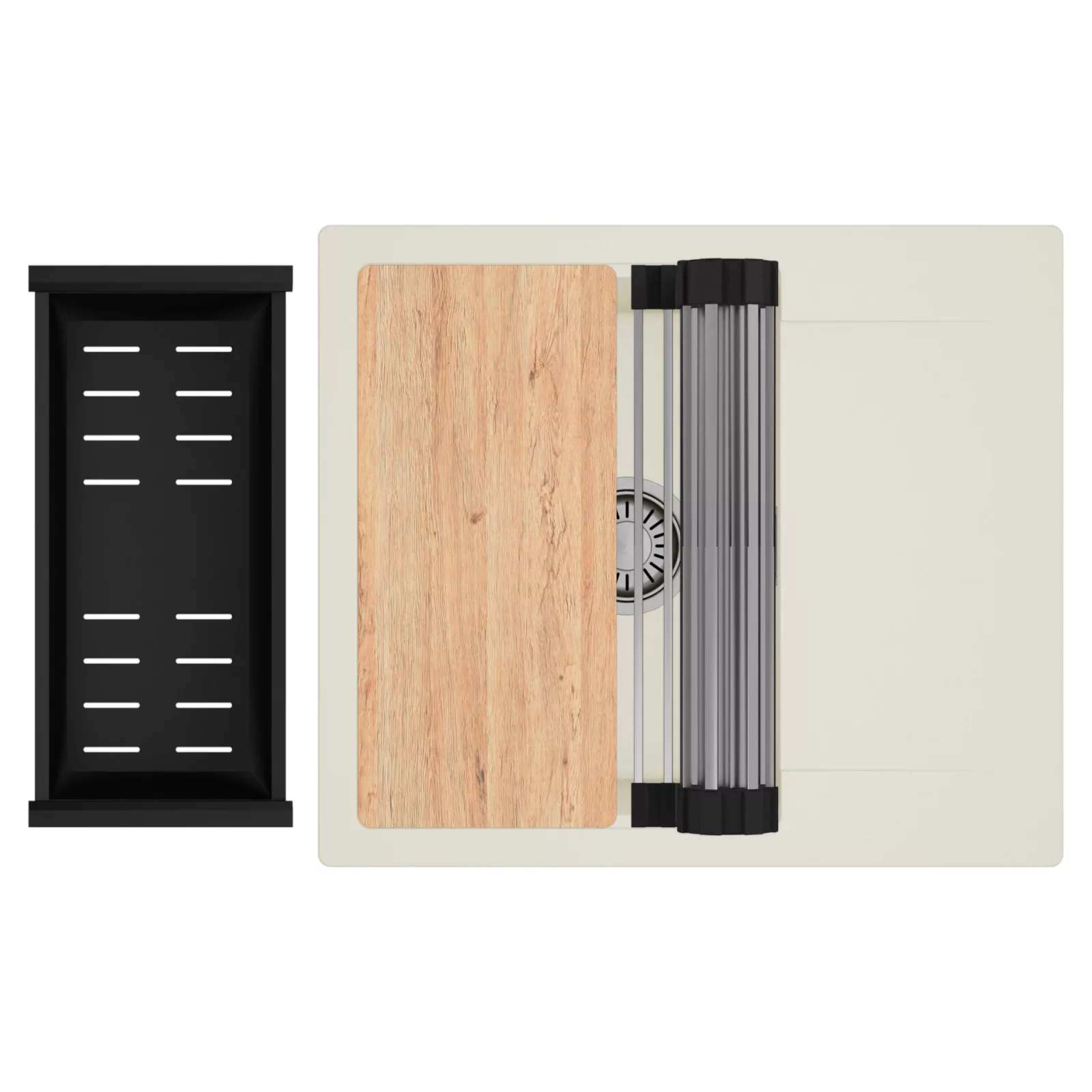 HD Onyx White 58 egymedencés mosogatótálca szett, vágódeszkával, csepegtetőráccsal és kosárral, tört fehér