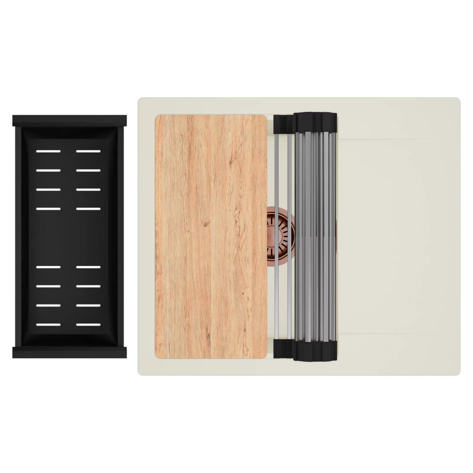 HD Onyx White 58 egymedencés mosogatótálca szett, vágódeszkával, csepegtetőráccsal és kosárral, tört fehér