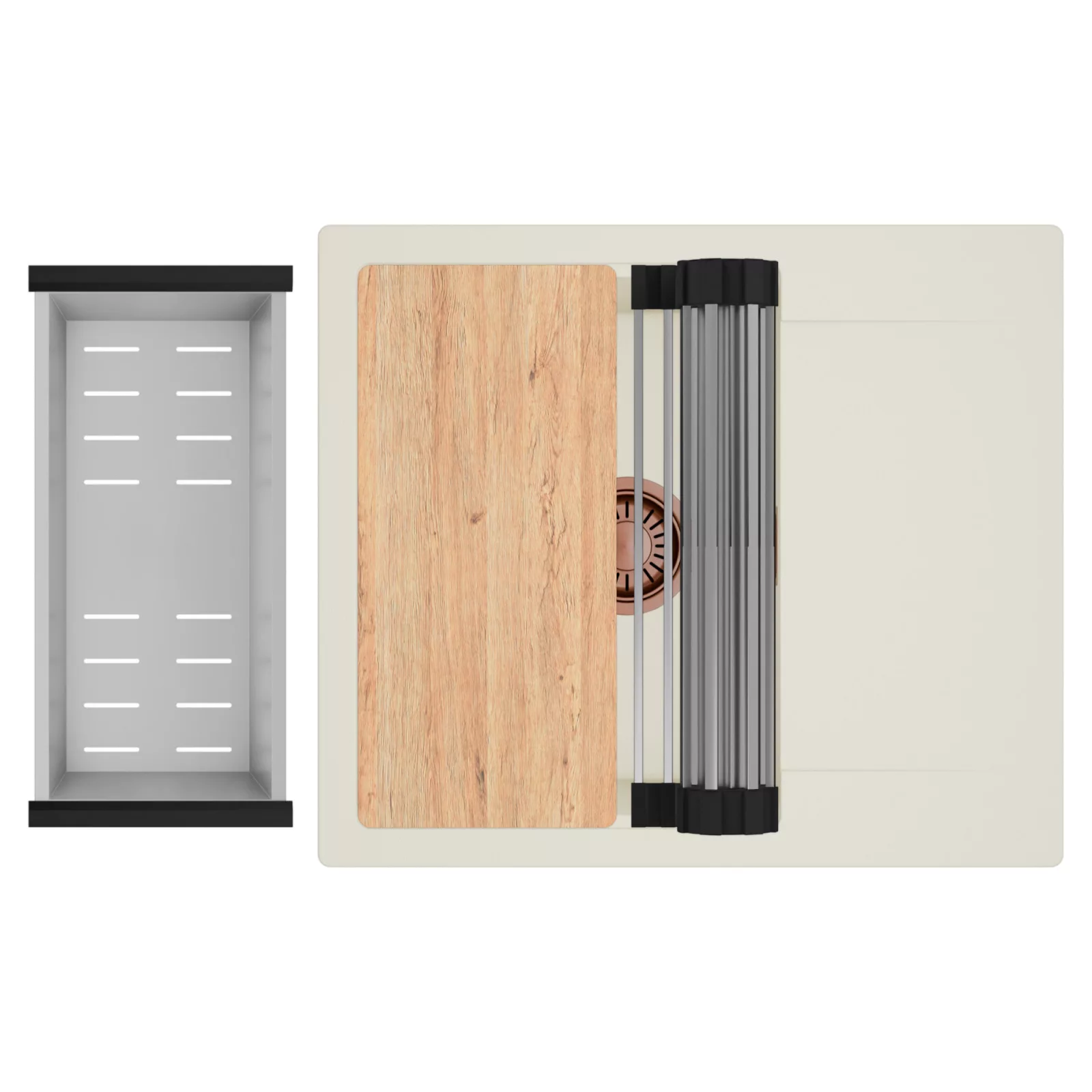 A HomeDepo SmartEdge Többfunkciós Peremrendszer egy intelligensen kialakított peremmegoldás, amely a mosogatót kompakt, mégis teljes értékű konyhai térré alakítja a mindennapok során. A speciális peremkialakítás lehetővé teszi a vágódeszka, a feltekerhető csepegtető rács, a gyümölcsmosó és a csepegtető kosár stabil, biztonságos és kényelmes elhelyezését közvetlenül a mosogató speciális belső peremén. A kiegészítők síkban csúsztathatók és szabadon kombinálhatók, így extra munkafelületet nyersz anélkül, hogy helyet foglalnál a konyhapulton – a mosogató valódi többfunkciós központtá válik.