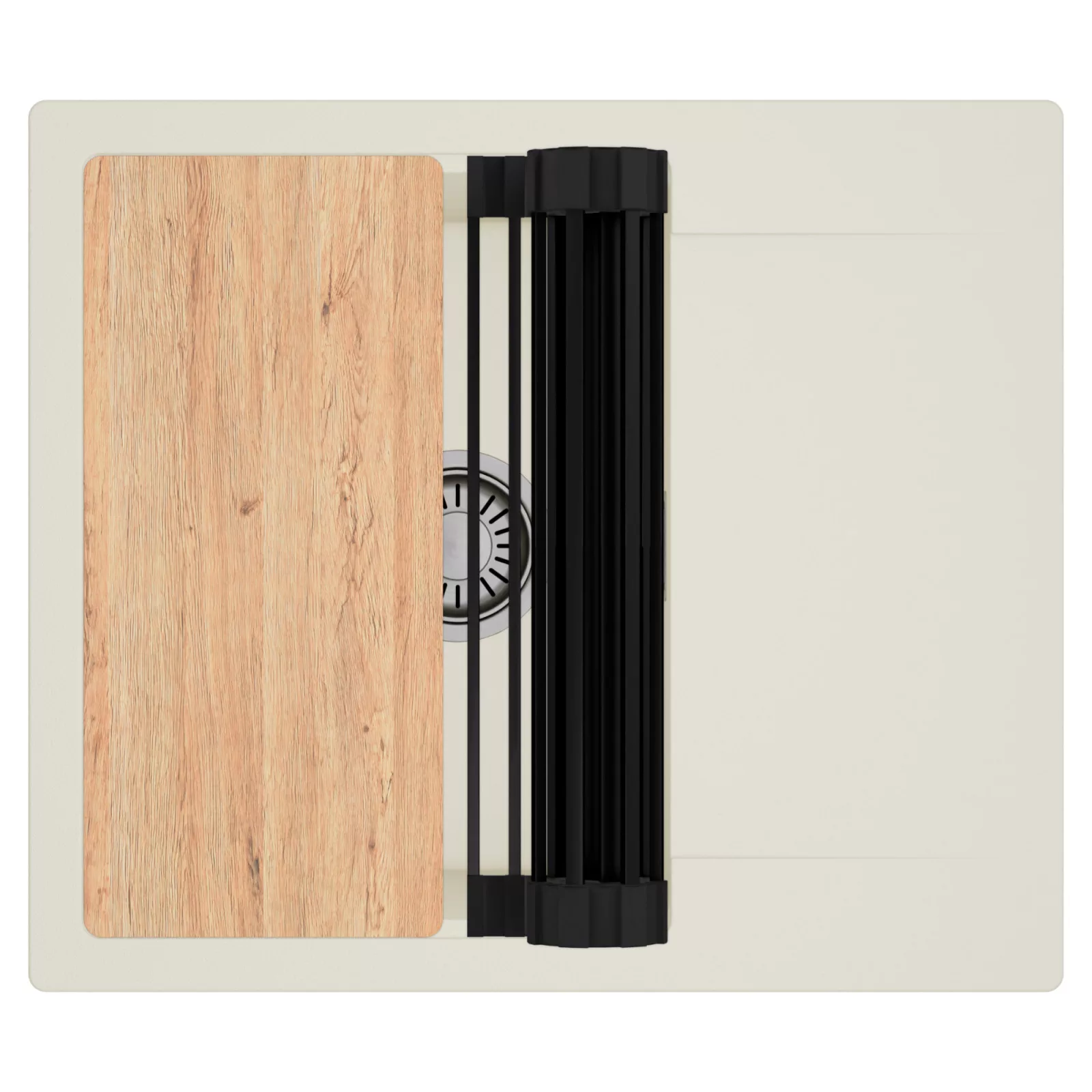 HD Onyx White 58 egymedencés mosogatótálca szett, vágódeszkával és csepegtetőráccsal, tört fehér