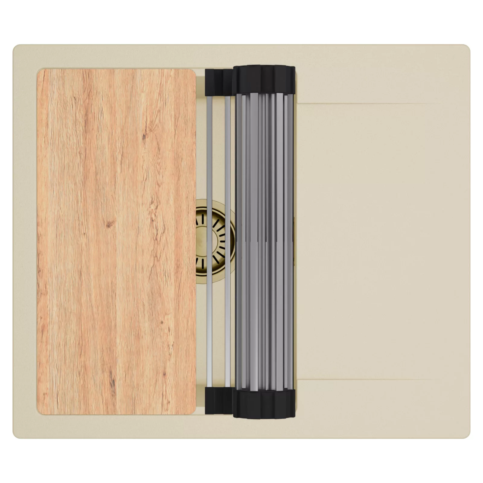 HD Onyx Beige 58 egymedencés mosogatótálca szett, vágódeszkával és csepegtetőráccsal, soft bézs