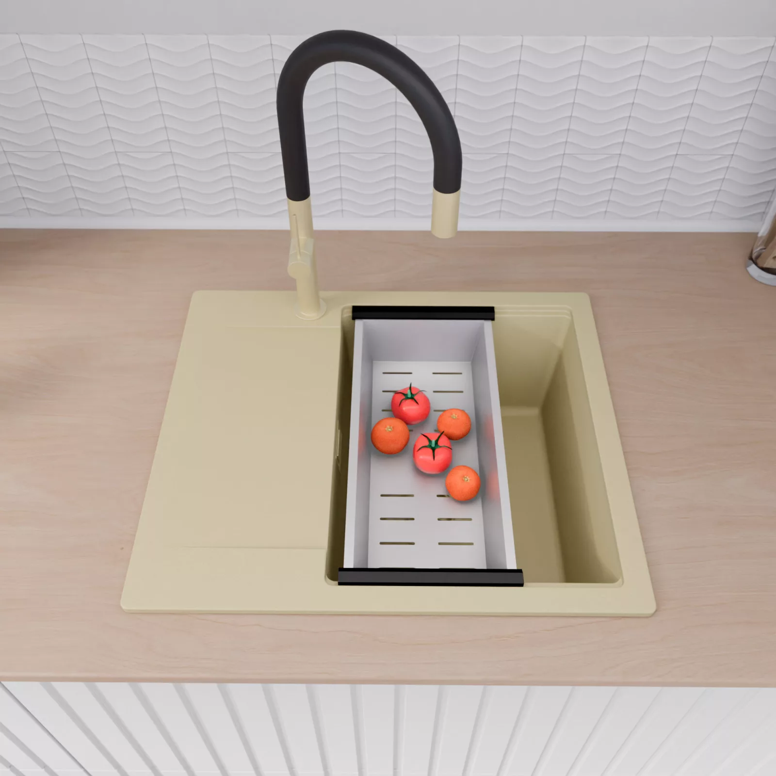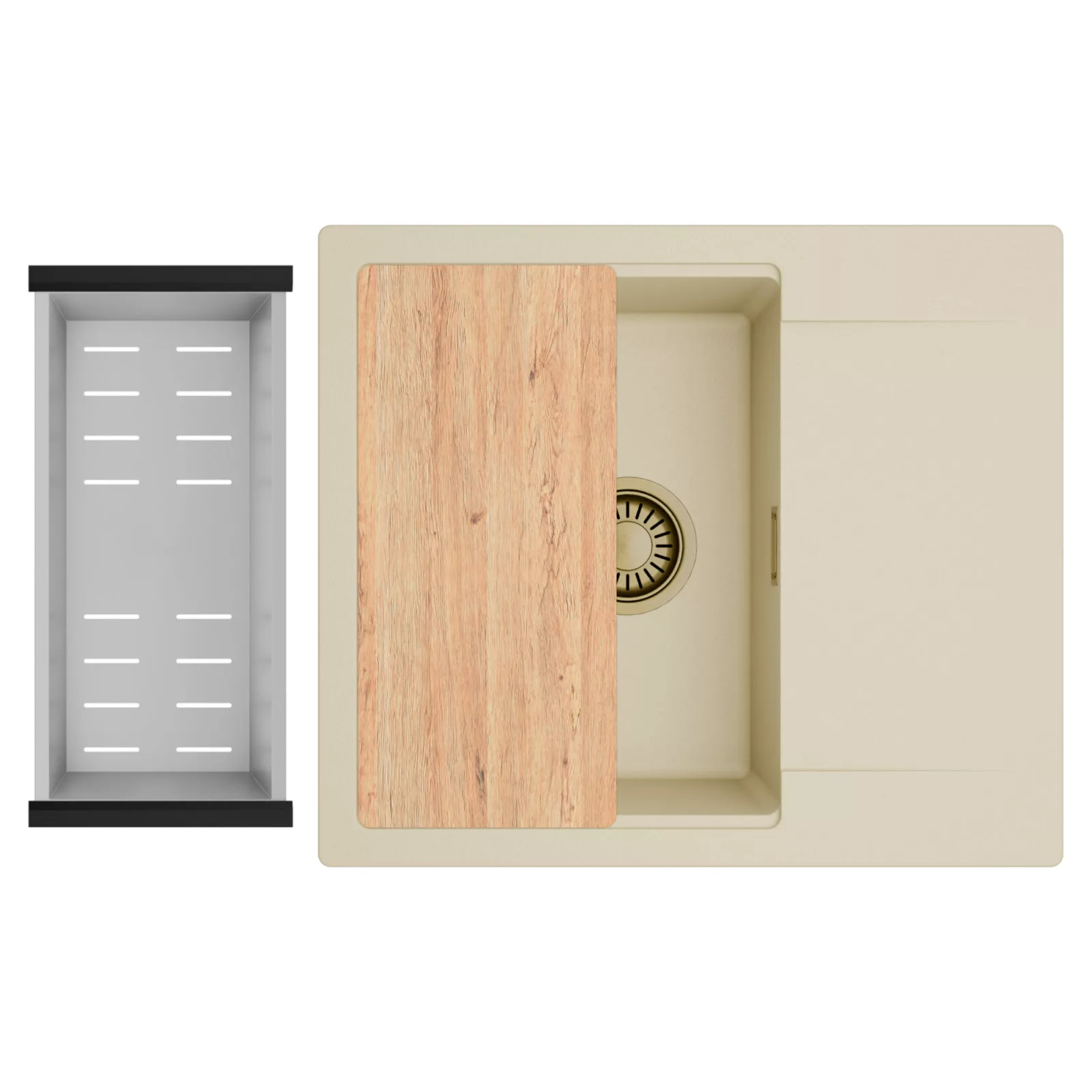 HD Onyx Beige 58 egymedencés mosogatótálca szett, vágódeszkával és csepegtetőkosárral, soft bézs