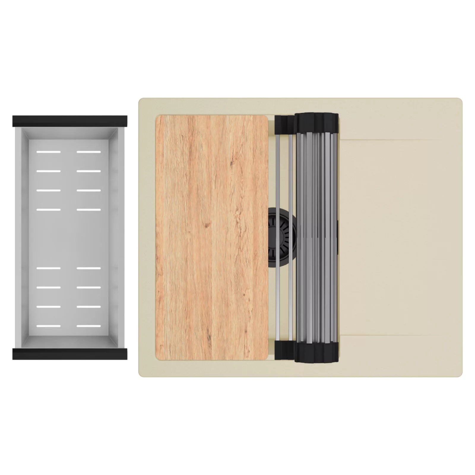 HD Onyx Beige 58 egymedencés mosogatótálca szett, vágódeszkával, csepegtetőráccsal és kosárral, soft bézs