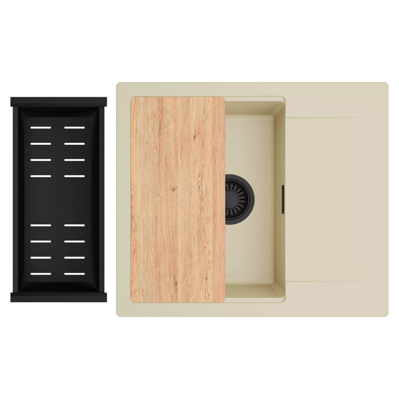 HD Onyx Beige 58 egymedencés mosogatótálca szett, vágódeszkával és csepegtetőkosárral, soft bézs