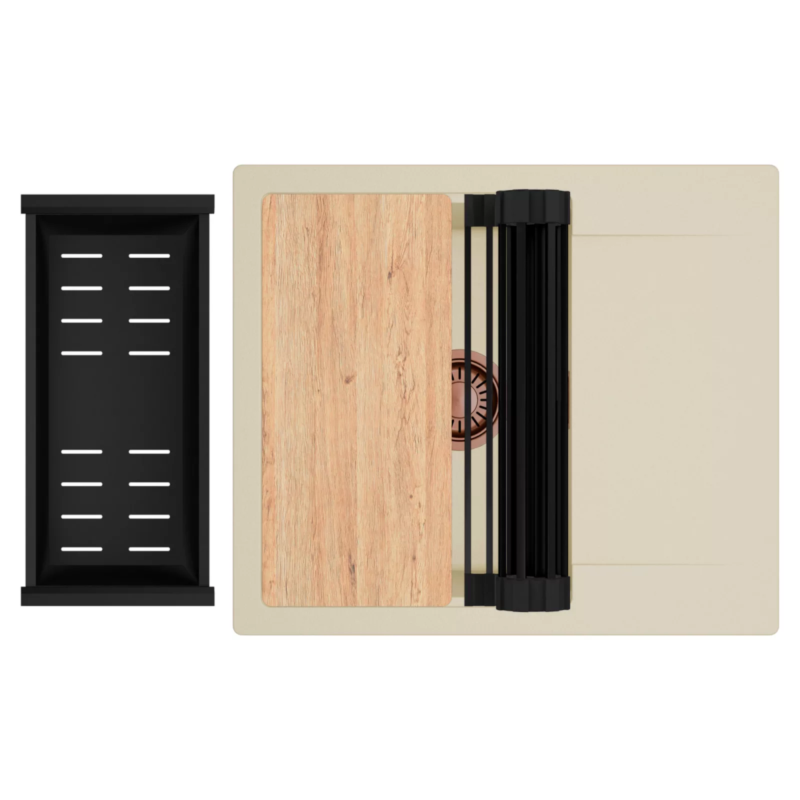 HD Onyx Beige 58 egymedencés mosogatótálca szett, vágódeszkával, csepegtetőráccsal és kosárral, soft bézs