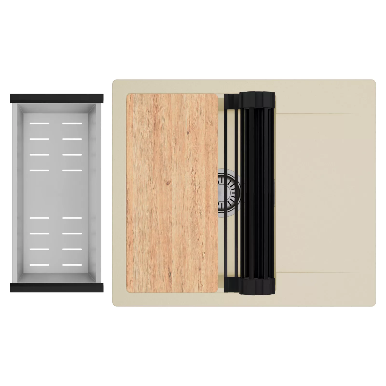 HD Onyx Beige 58 egymedencés mosogatótálca szett, vágódeszkával, csepegtetőráccsal és kosárral, soft bézs