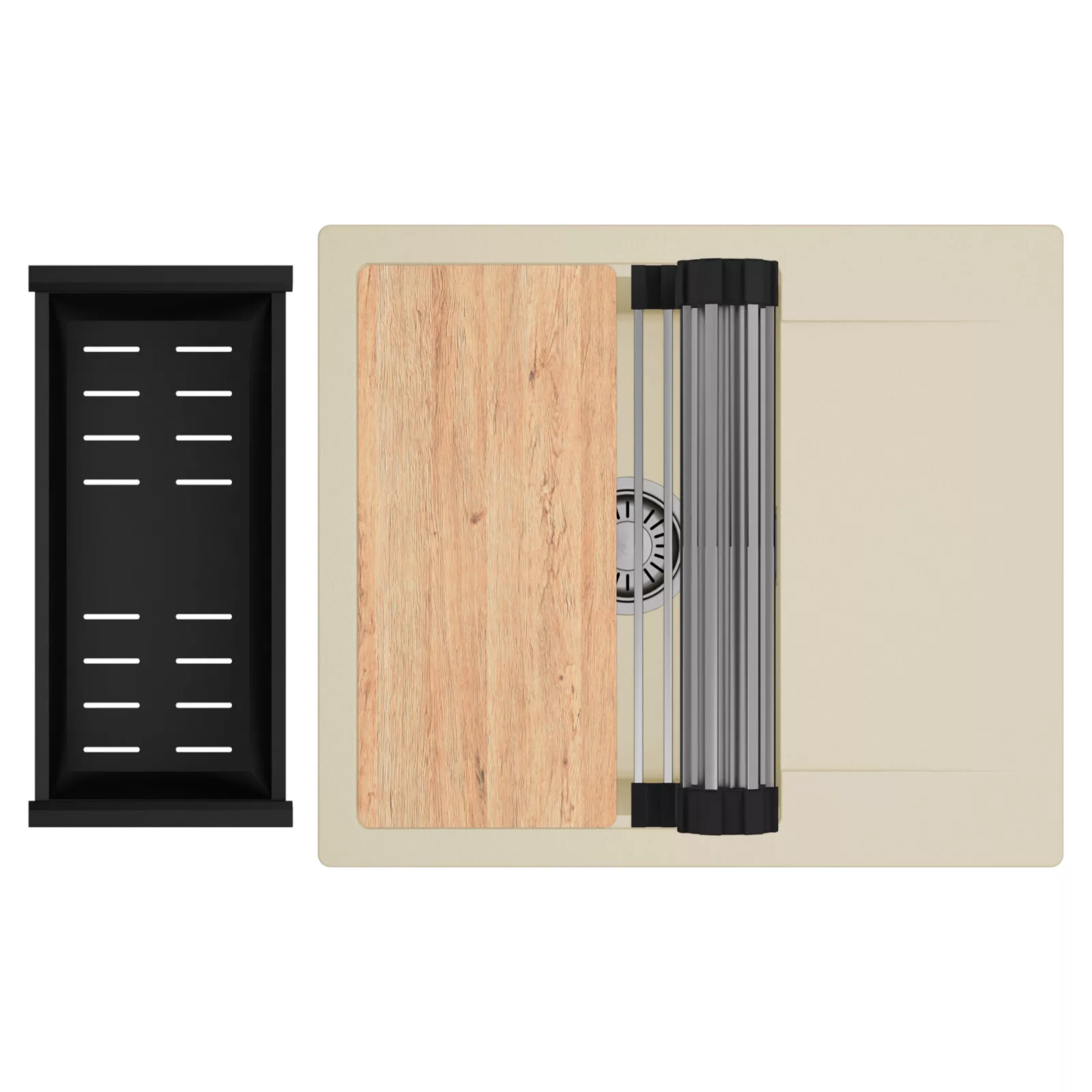HD Onyx Beige 58 egymedencés mosogatótálca szett, vágódeszkával, csepegtetőráccsal és kosárral, soft bézs