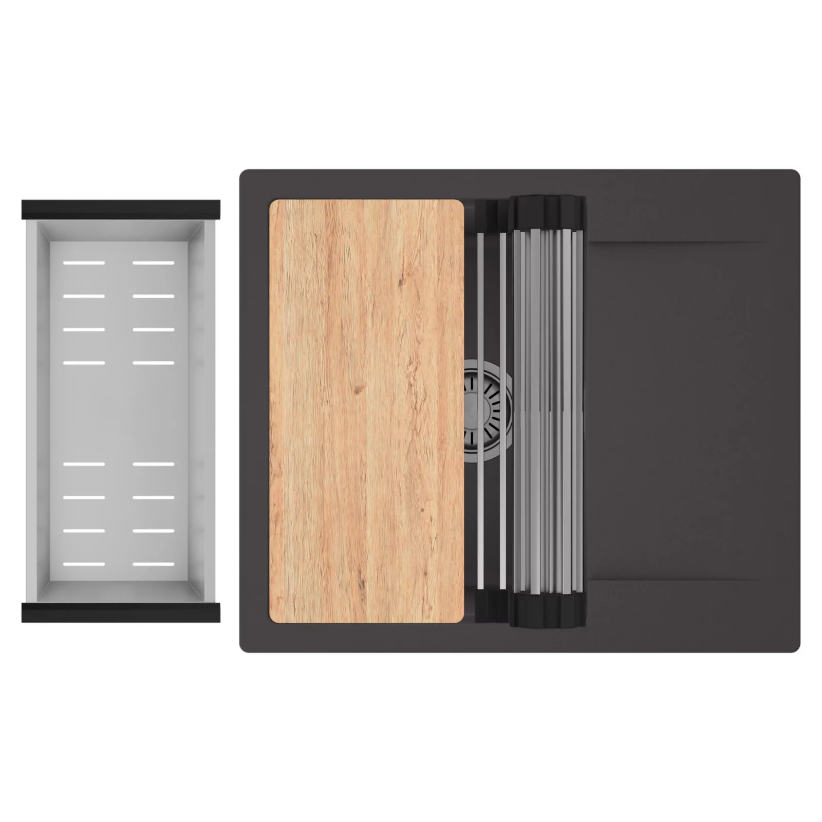HD Onyx 58 egymedencés mosogatótálca szett, vágódeszkával, csepegtetőráccsal és kosárral, matt antracit