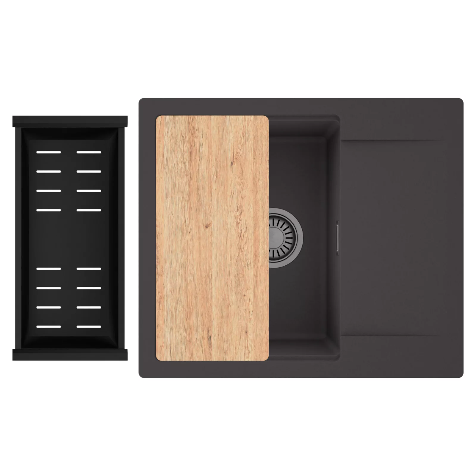 HD Onyx 58 egymedencés mosogatótálca szett, vágódeszkával és csepegtetőkosárral, matt antracit