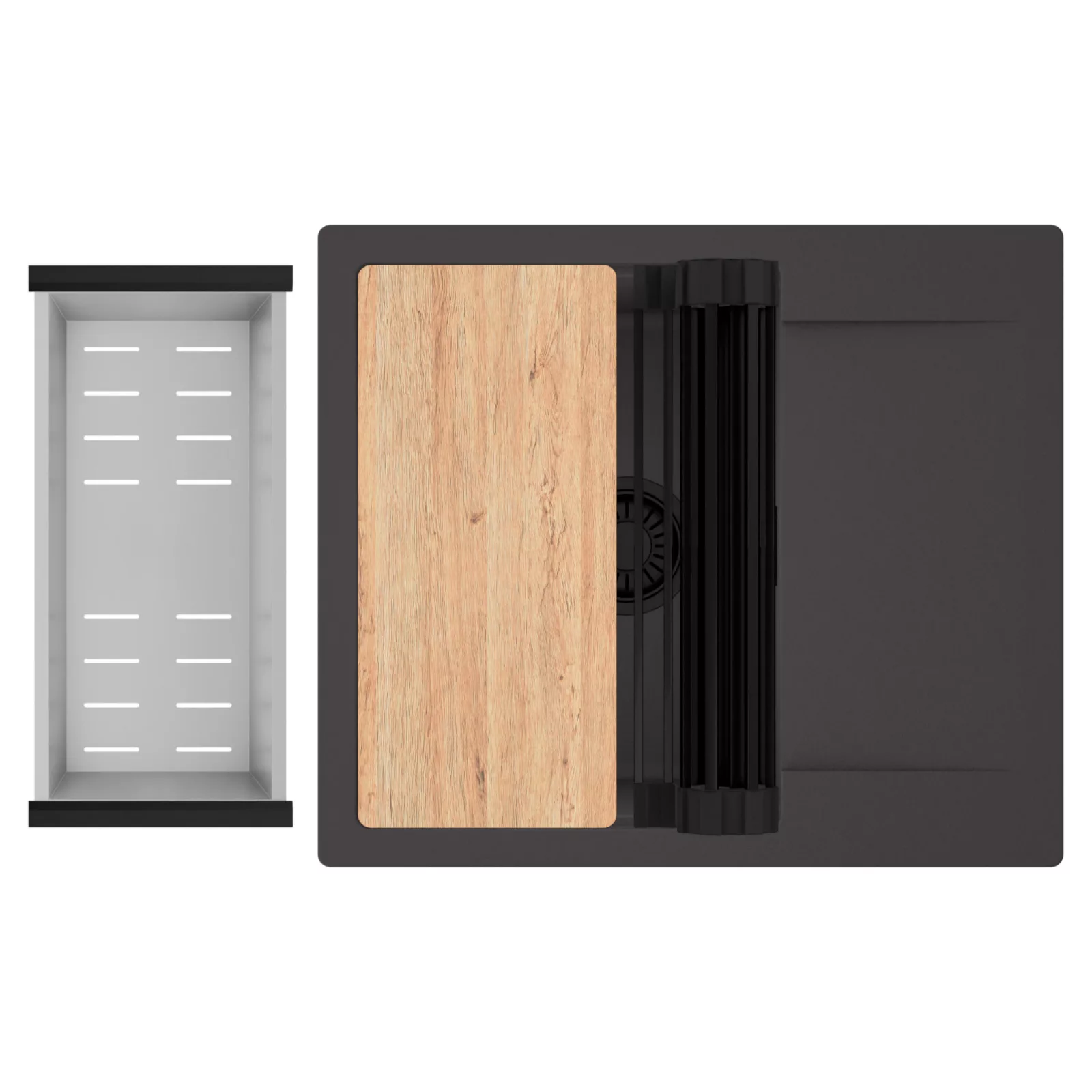 HD Onyx 58 egymedencés mosogatótálca szett, vágódeszkával, csepegtetőráccsal és kosárral, matt antracit