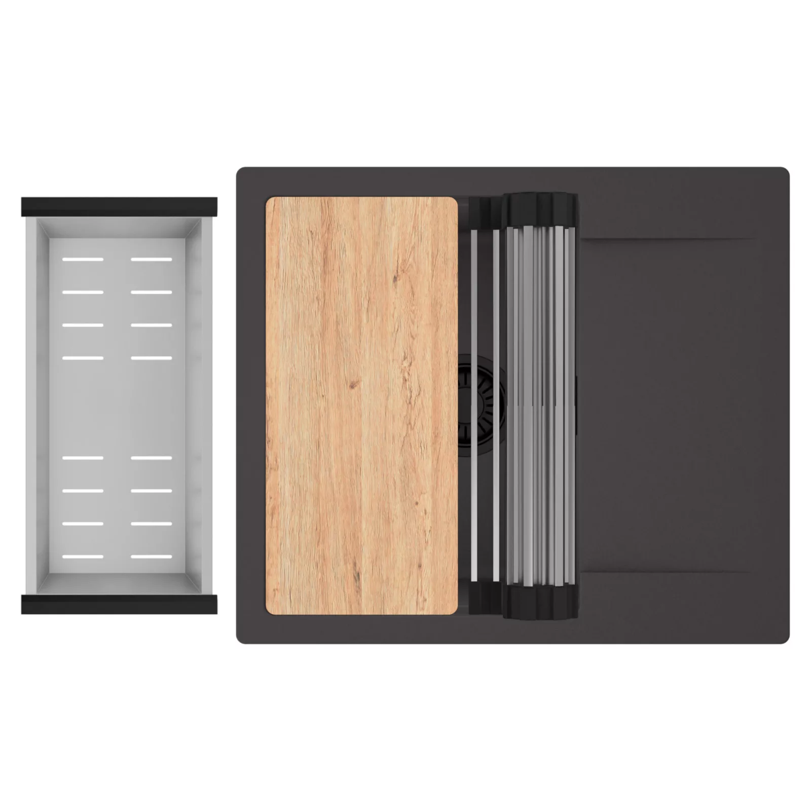 HD Onyx 58 egymedencés mosogatótálca szett, vágódeszkával, csepegtetőráccsal és kosárral, matt antracit